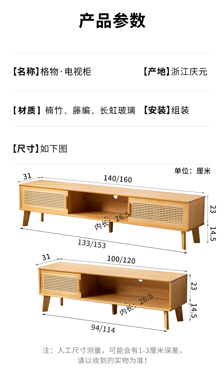 • 등나무 TV 캐비닛 140CM(단일 서랍)