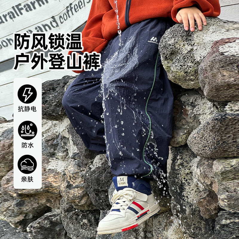 2025 봄 새로운 스타일 중대형 아동 스포츠 바지 팬더 Yuanyuan 소년 바지 야외 방풍 하이킹 바지