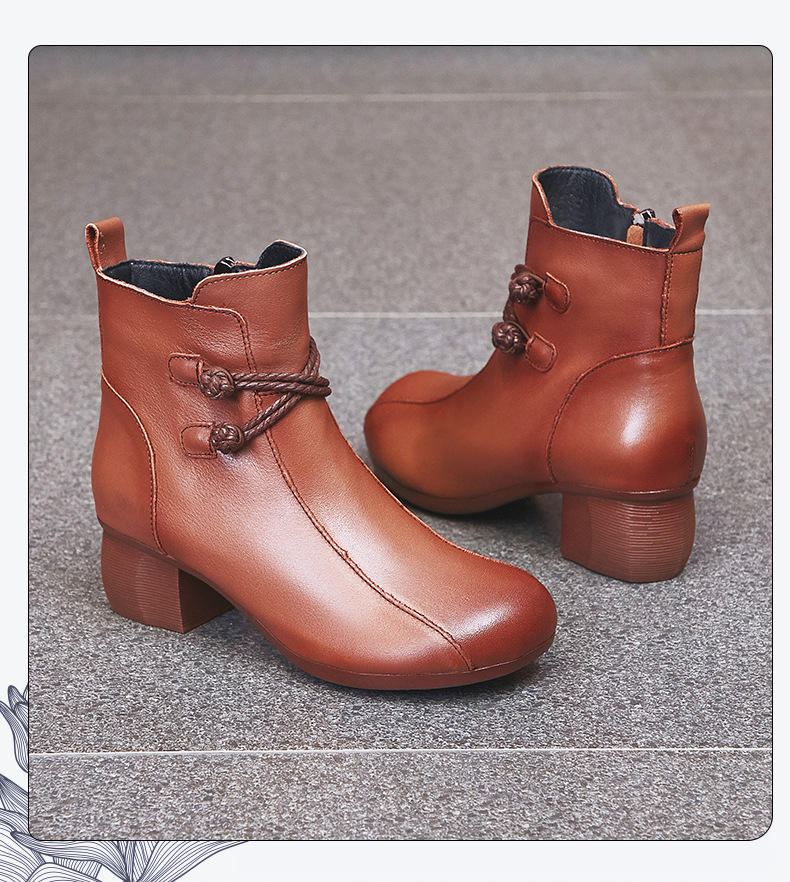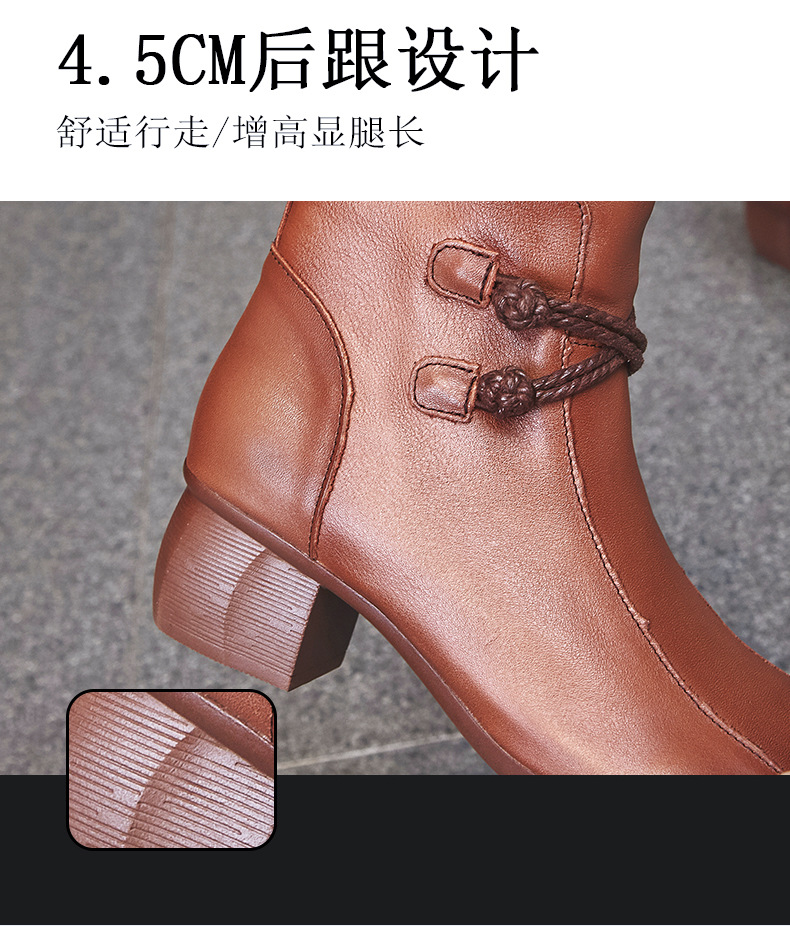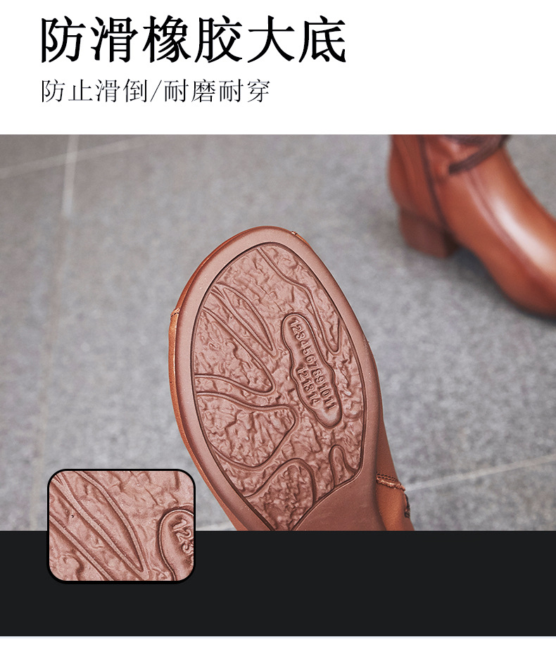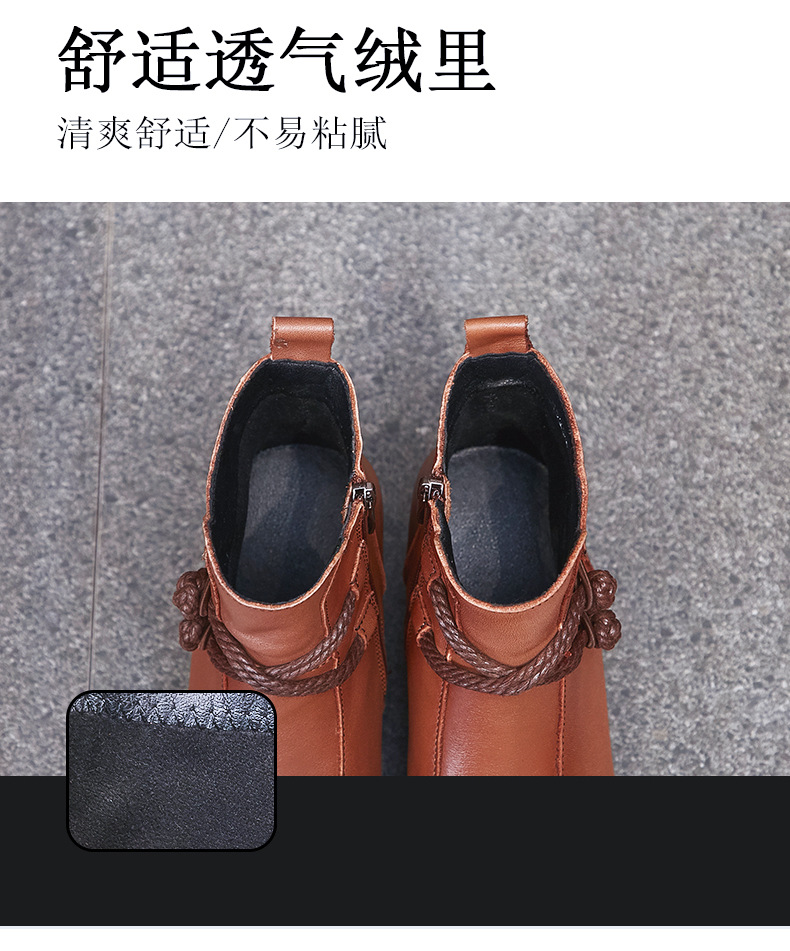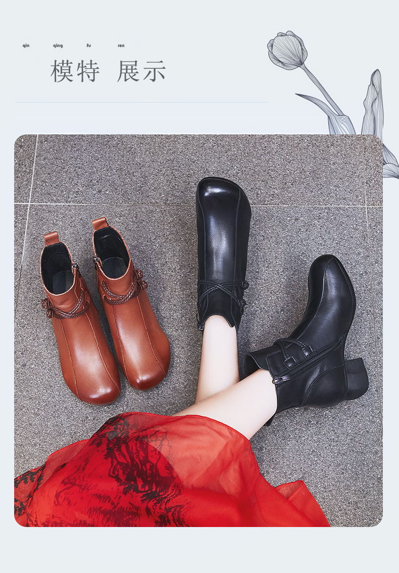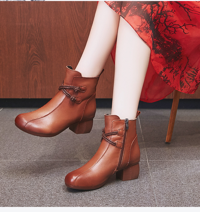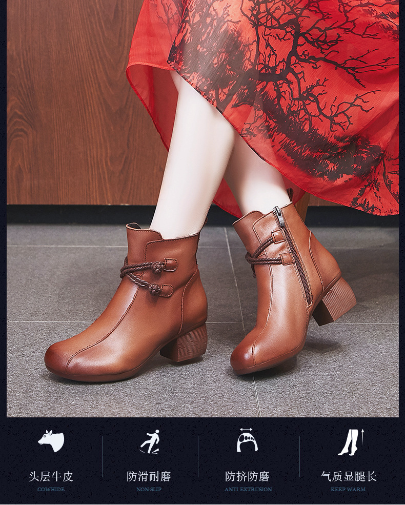 짧은 부츠 여성 복고풍 여성 신발 2024 겨울 새로운 중년 따뜻한면 신발 소 가죽 두꺼운 뒤꿈치 부드러운 바닥 마틴 부츠 도매