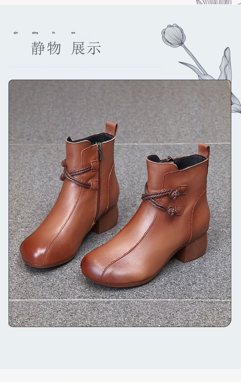 짧은 부츠 여성 복고풍 여성 신발 2024 겨울 새로운 중년 따뜻한면 신발 소 가죽 두꺼운 뒤꿈치 부드러운 바닥 마틴 부츠 도매스토어 가기