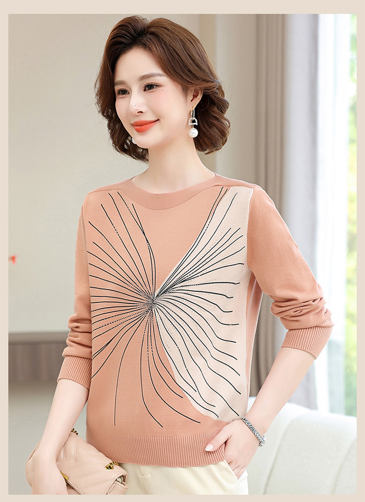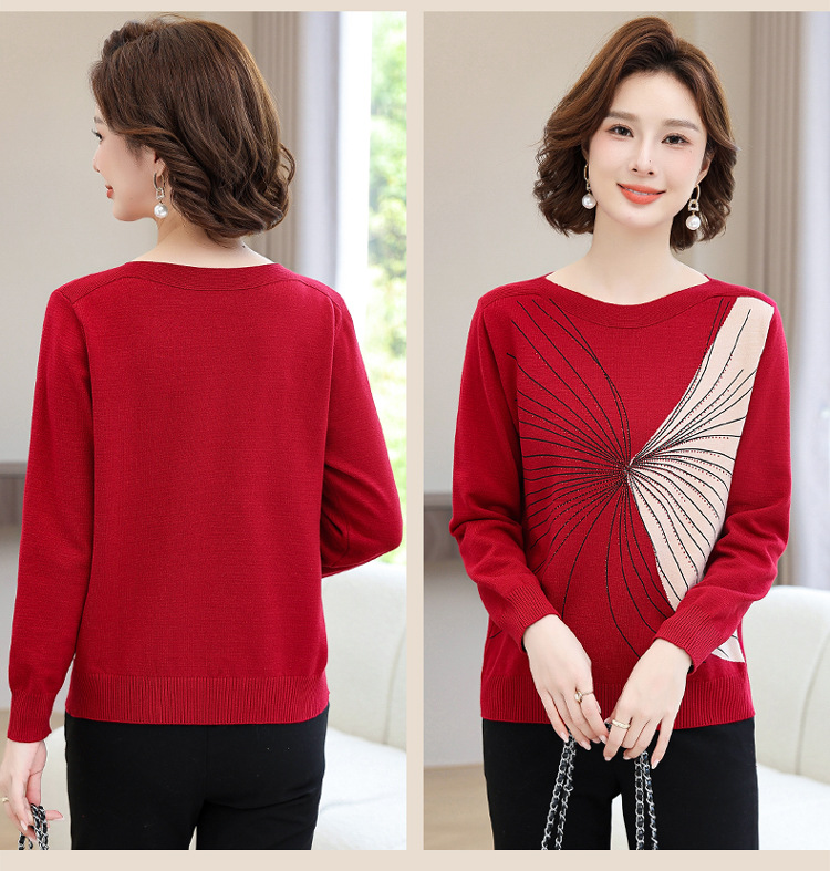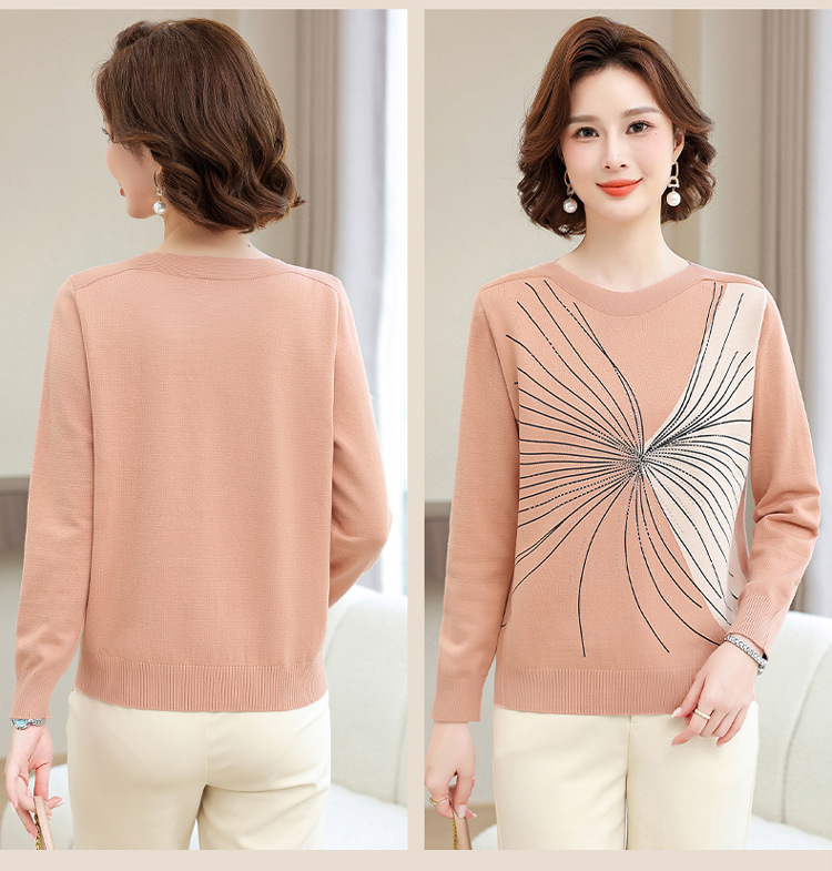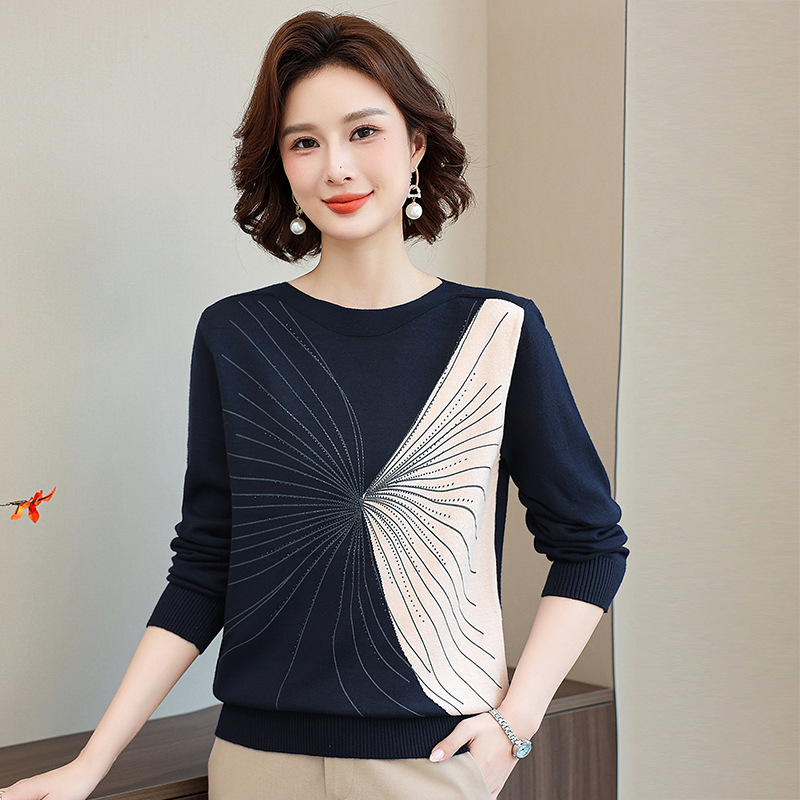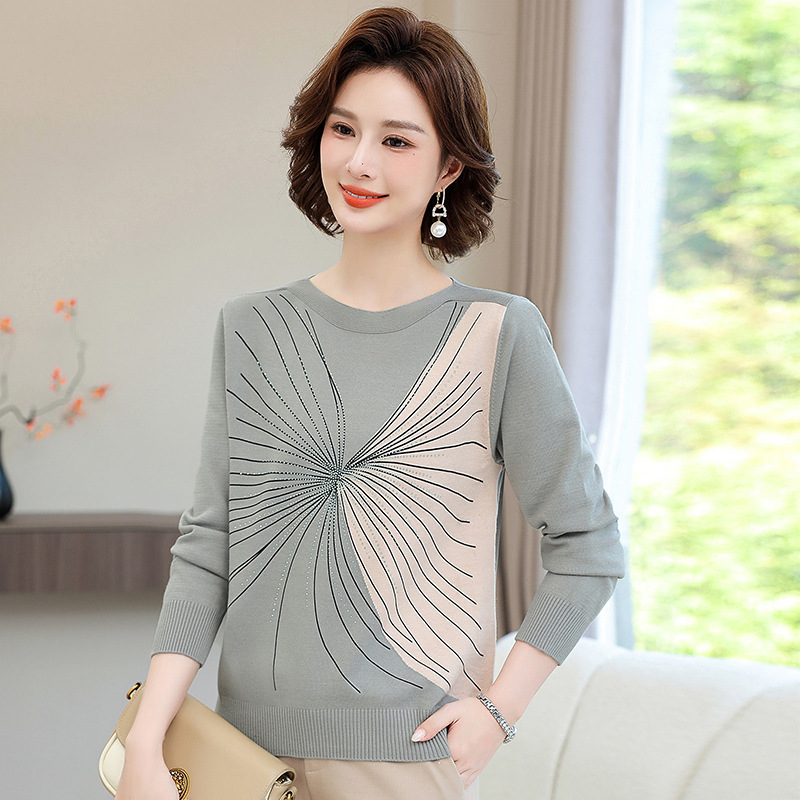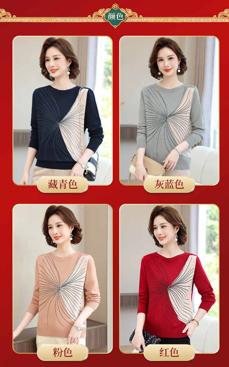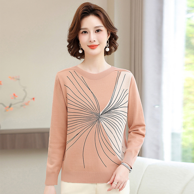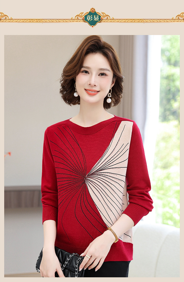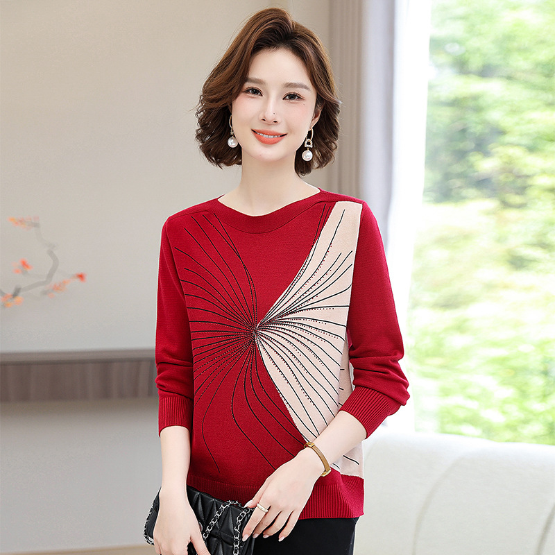 2024 가을과 겨울 중년 여성 패션 라운드 넥 긴 소매 바닥 셔츠 새로운 어머니 스웨터 웨스턴 컬러 매칭 탑