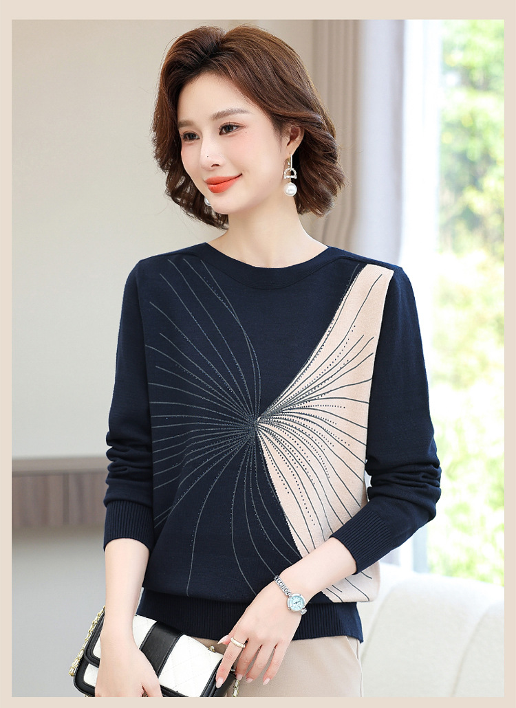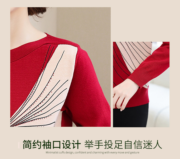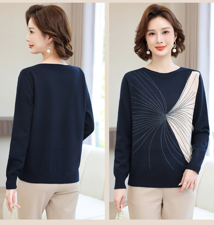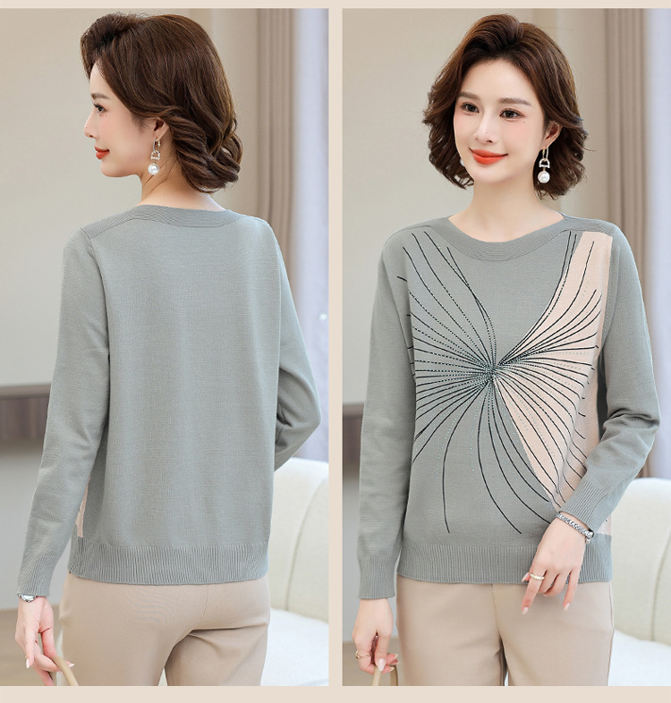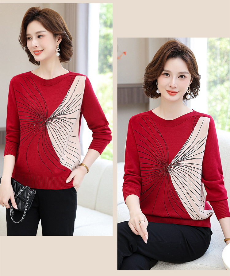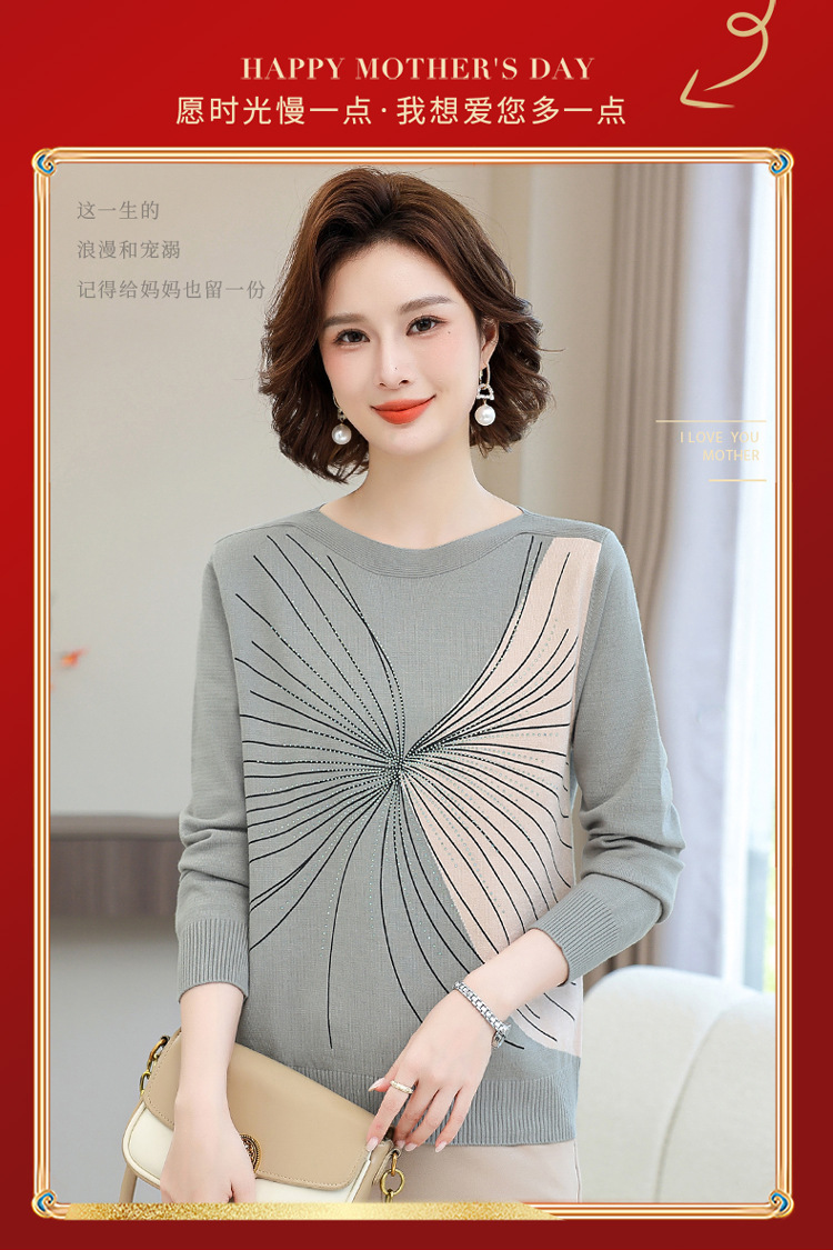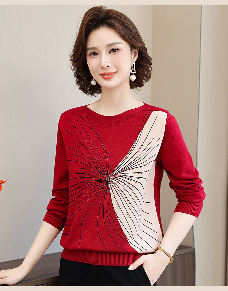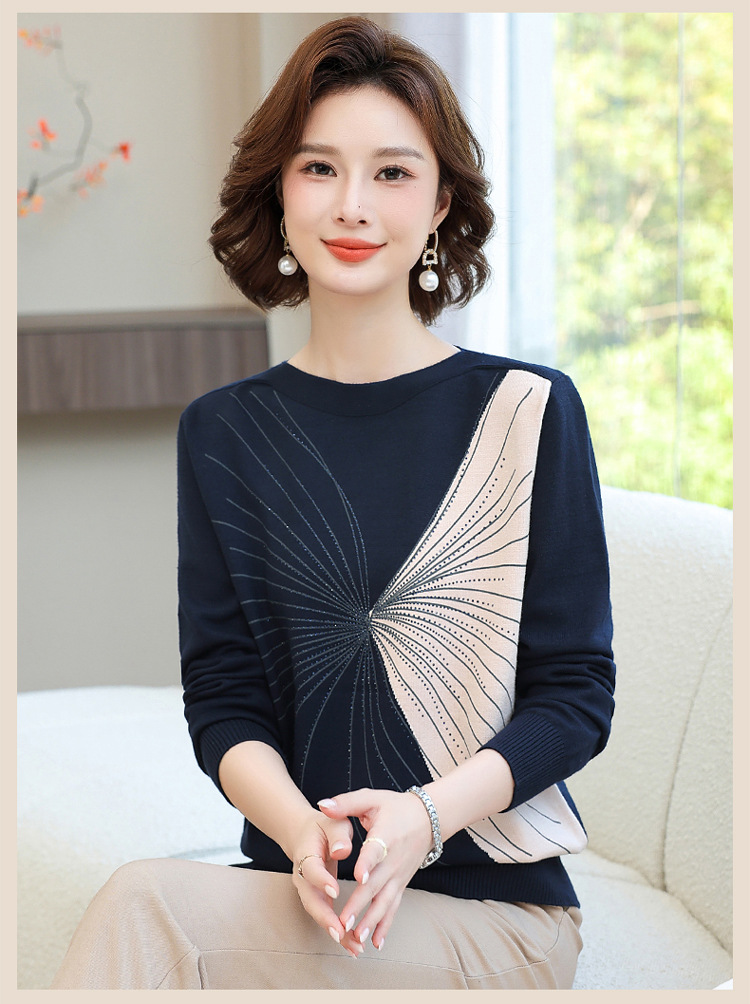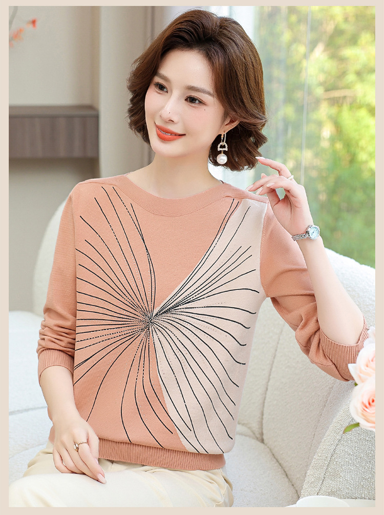 2024 가을과 겨울 중년 여성 패션 라운드 넥 긴 소매 바닥 셔츠 새로운 어머니 스웨터 웨스턴 컬러 매칭 탑