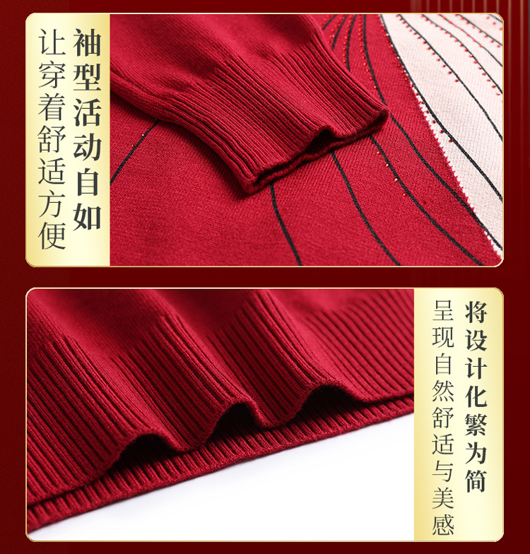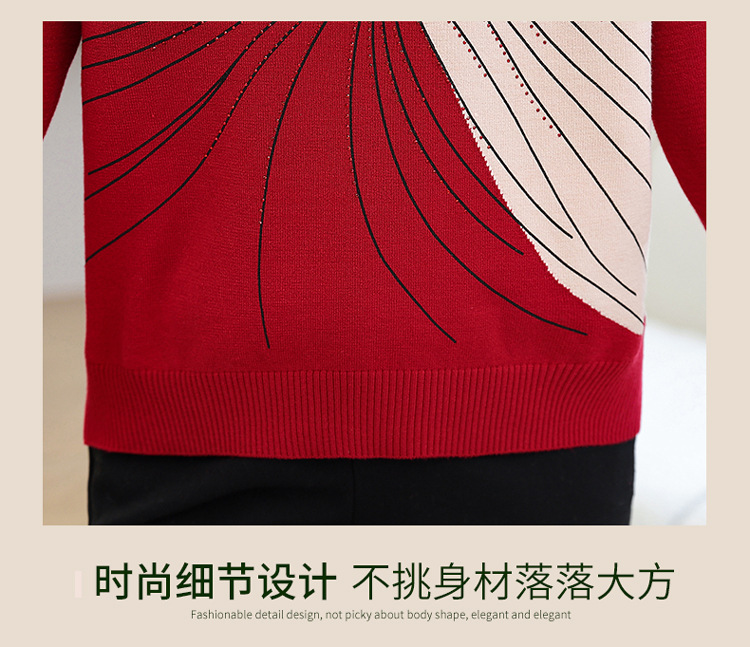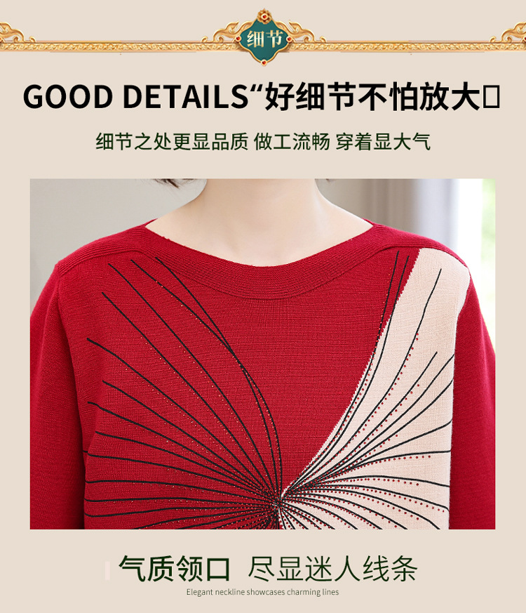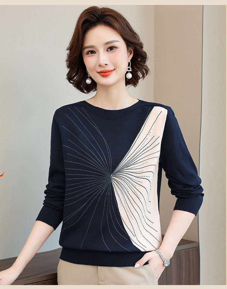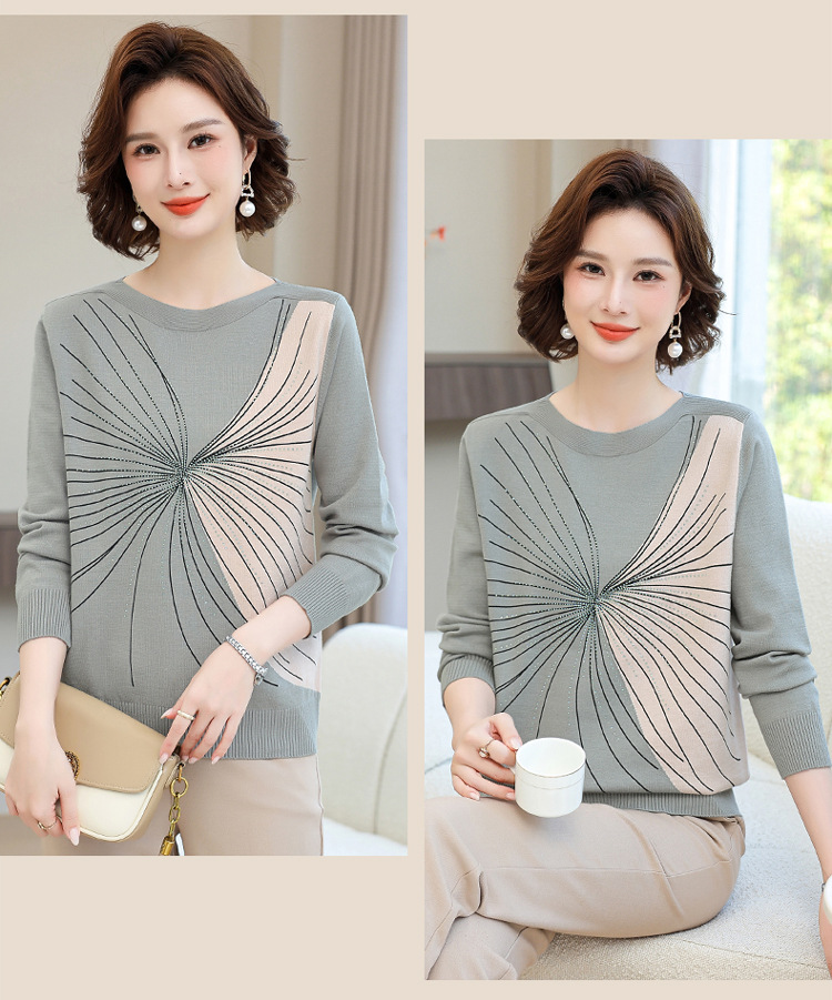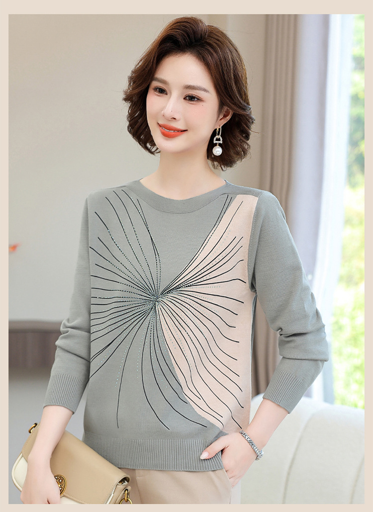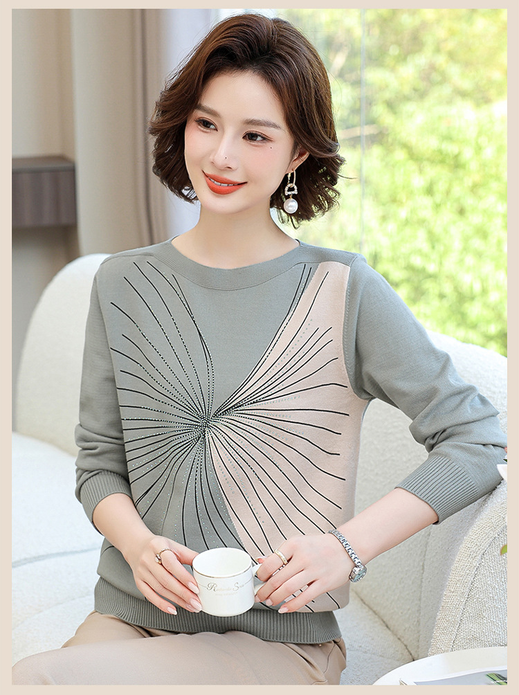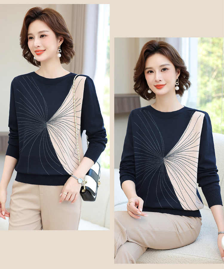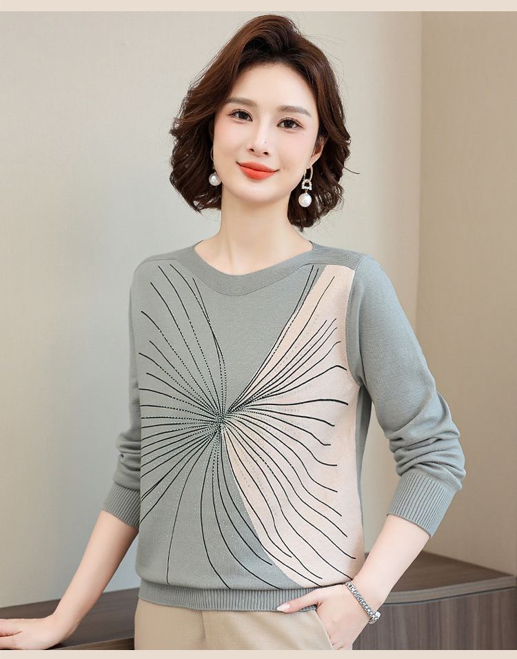2024 가을과 겨울 중년 여성 패션 라운드 넥 긴 소매 바닥 셔츠 새로운 어머니 스웨터 웨스턴 컬러 매칭 탑