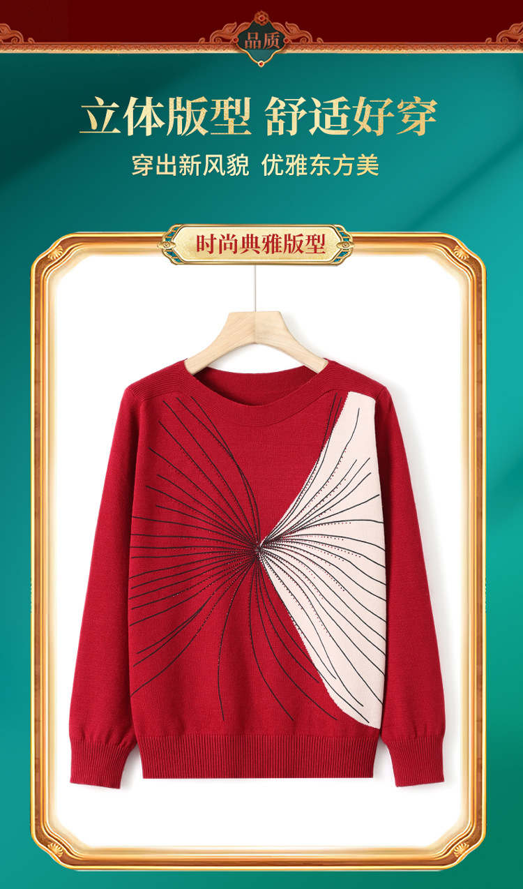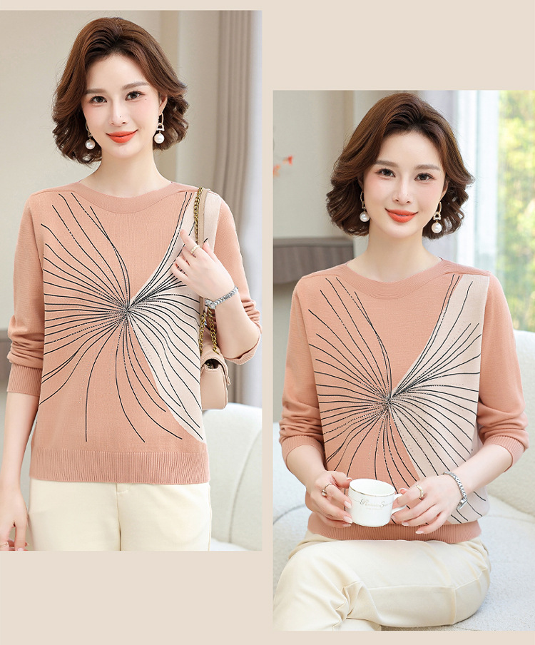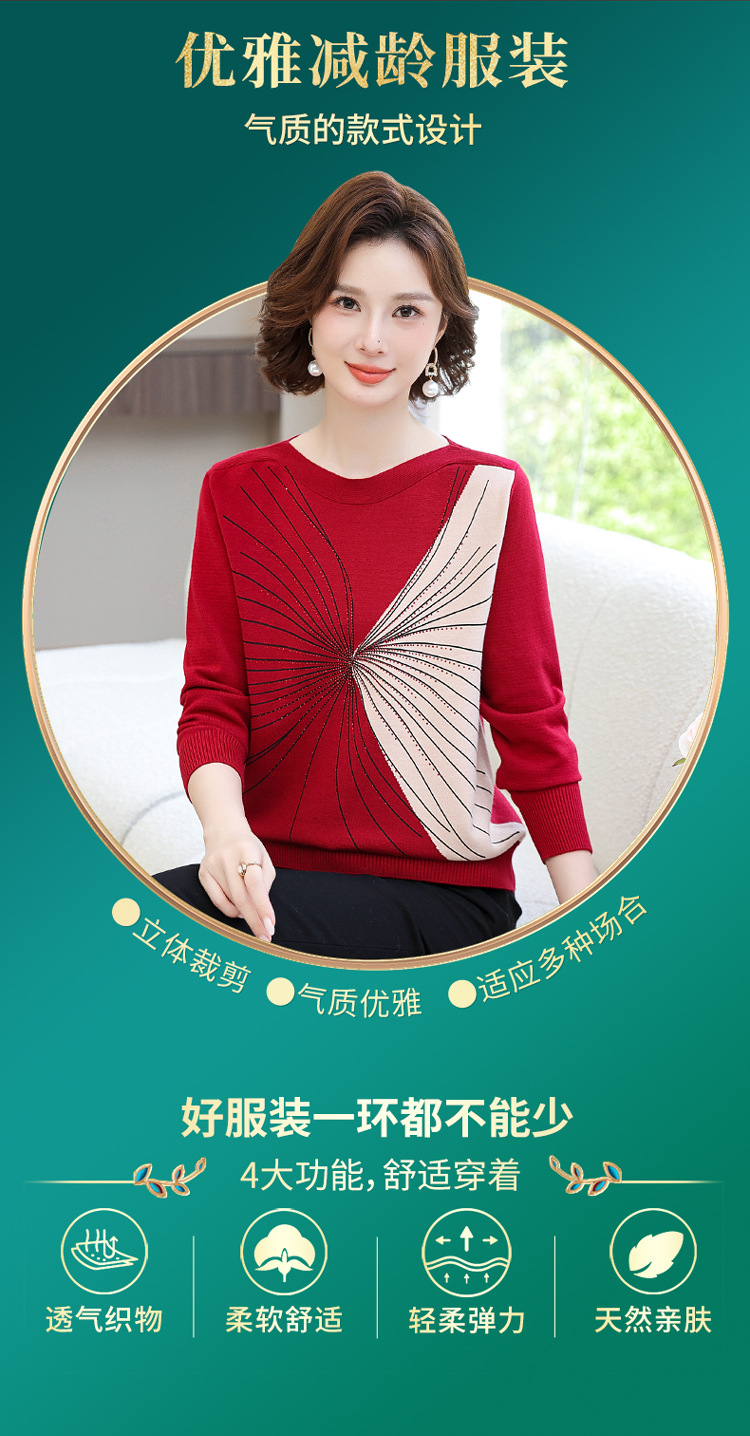 2024 가을과 겨울 중년 여성 패션 라운드 넥 긴 소매 바닥 셔츠 새로운 어머니 스웨터 웨스턴 컬러 매칭 탑스토어 가기