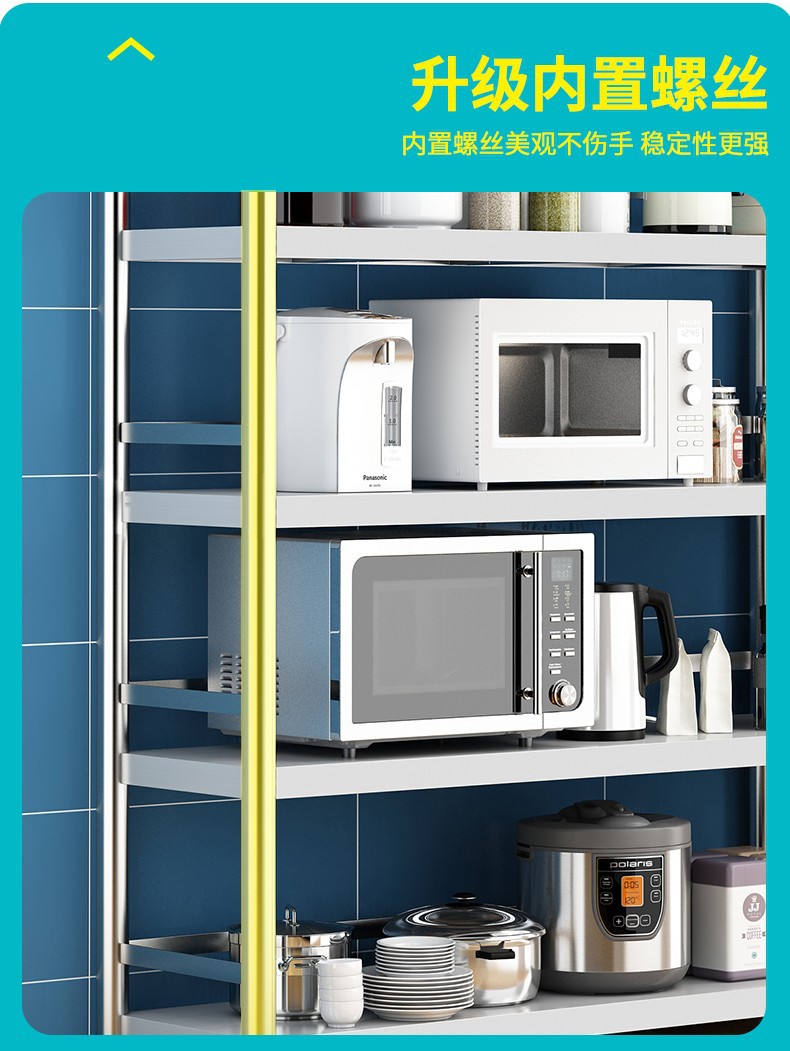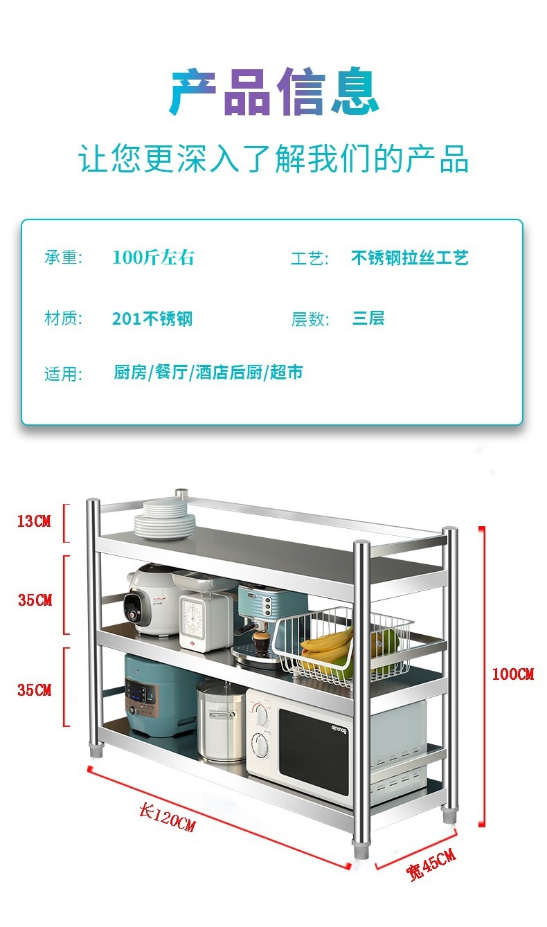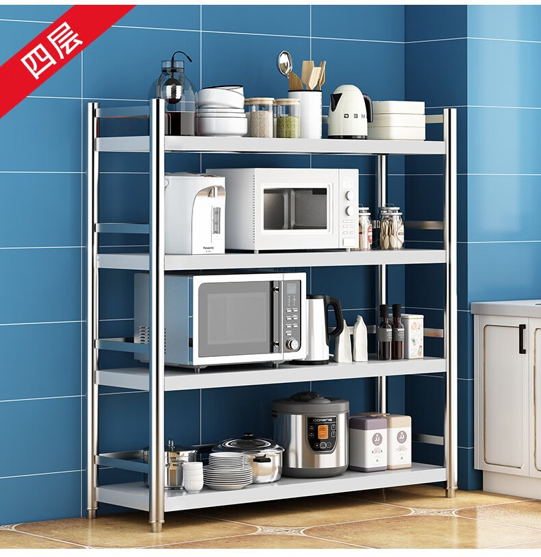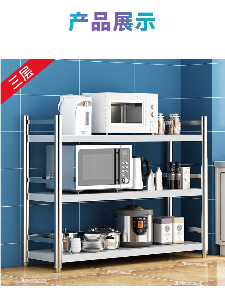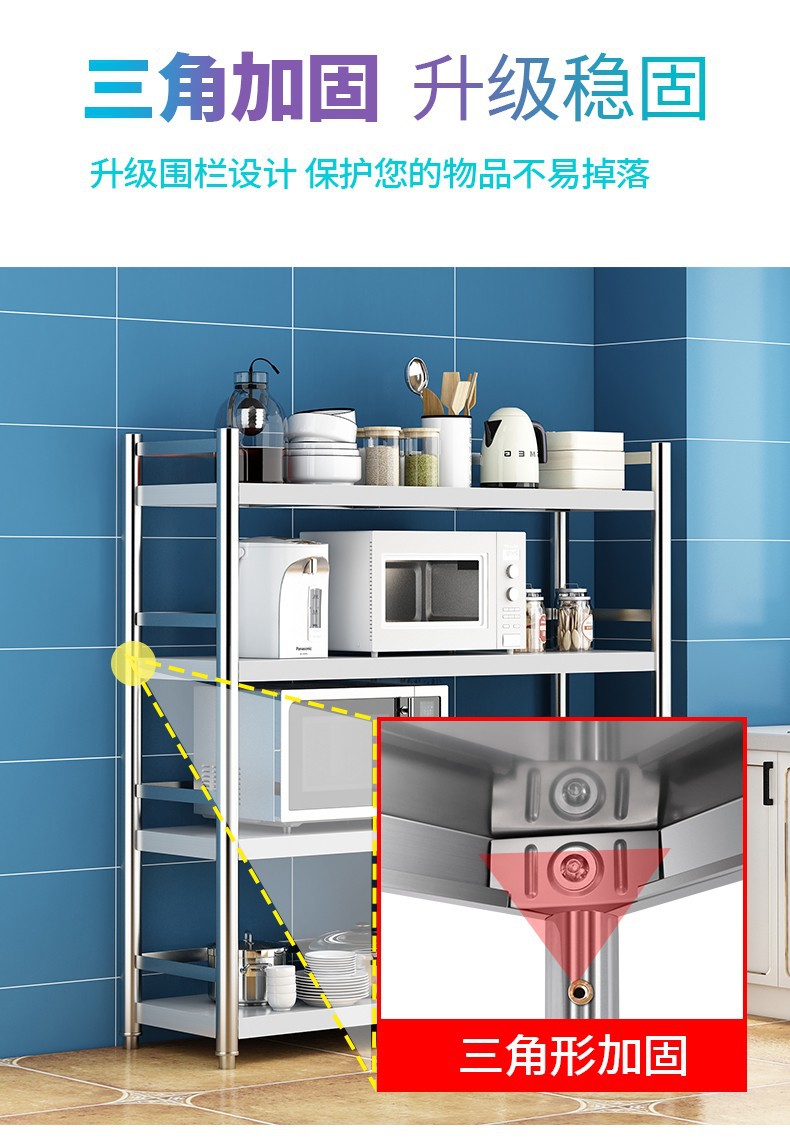 3 층 스테인레스 스틸 주방 다층 스토리지 랙 가정용 다기능 스토리지 플로어 마이크로파 스토리지 랙 오븐 랙