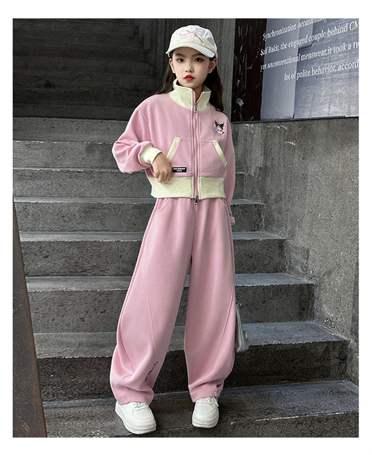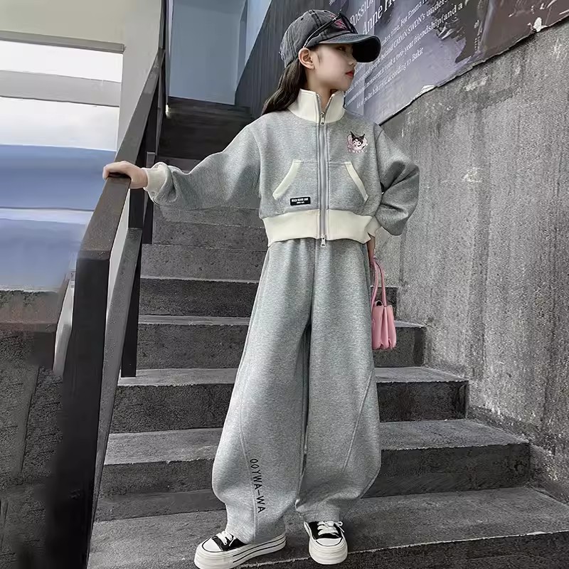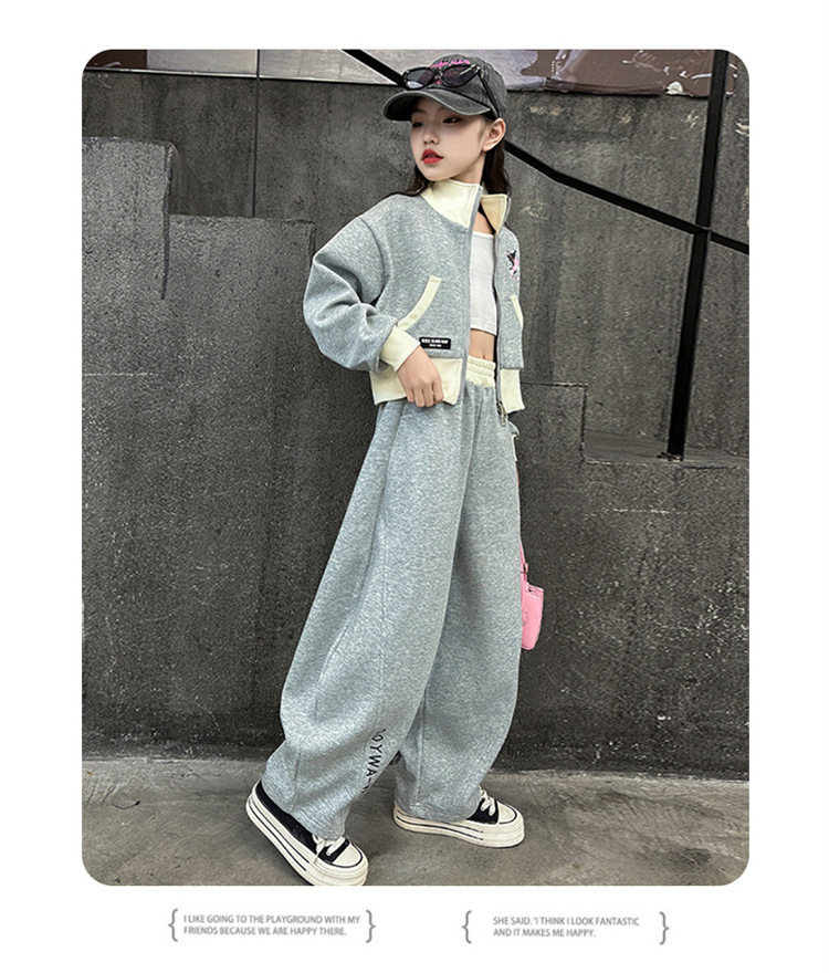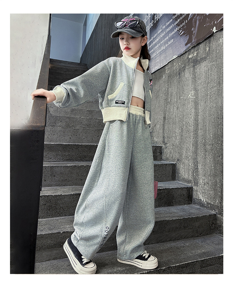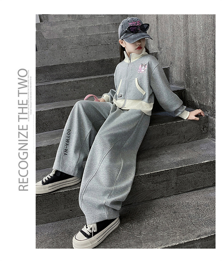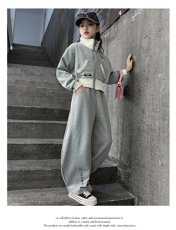 소녀 세트 2024 새로운 가을 원피스 서양식 어린이 스웨트 셔츠 어린이 유행 인터넷 연예인 프라이드 스트리트 캐주얼 투피스 세트