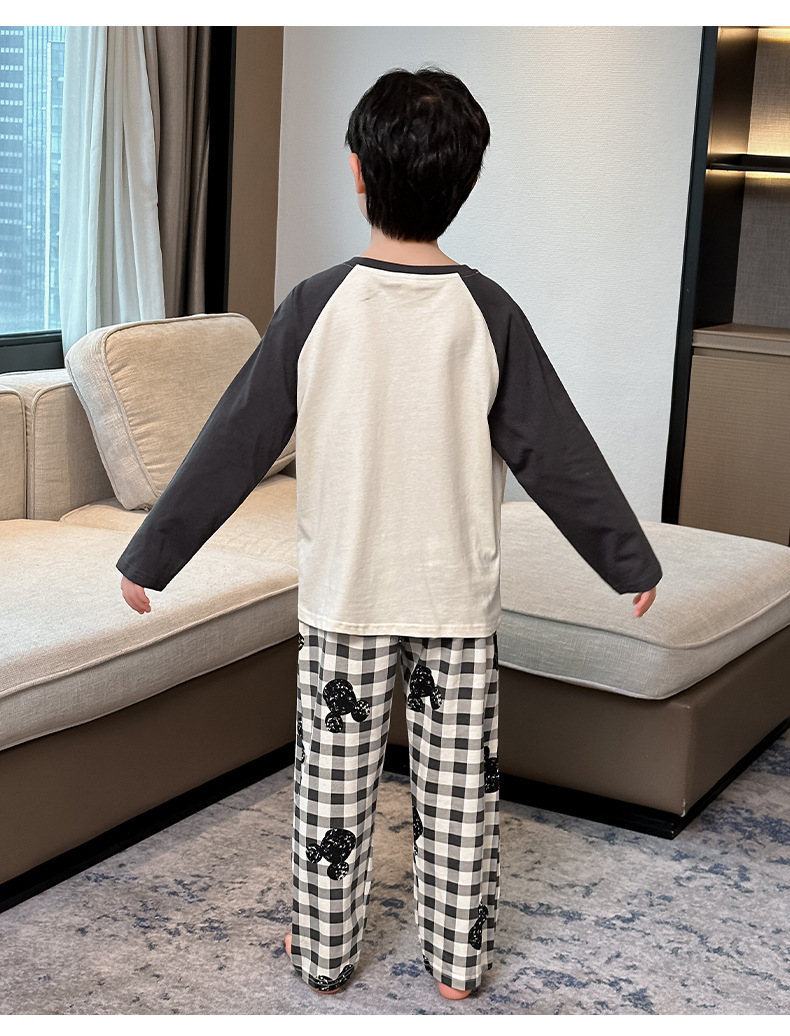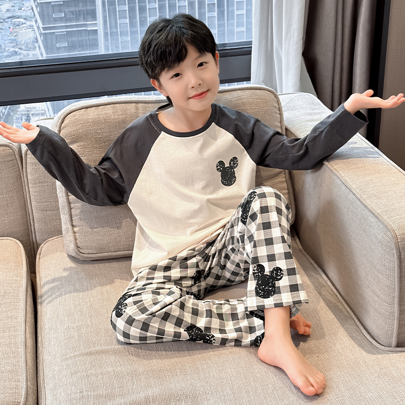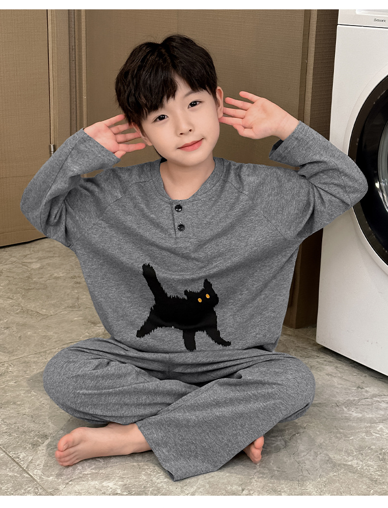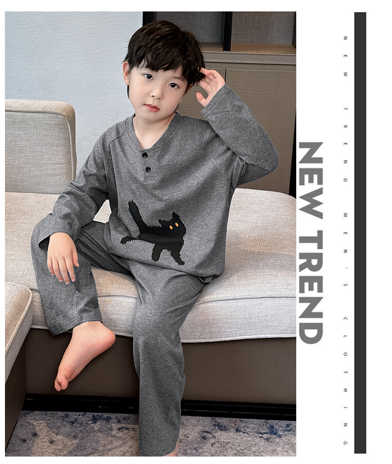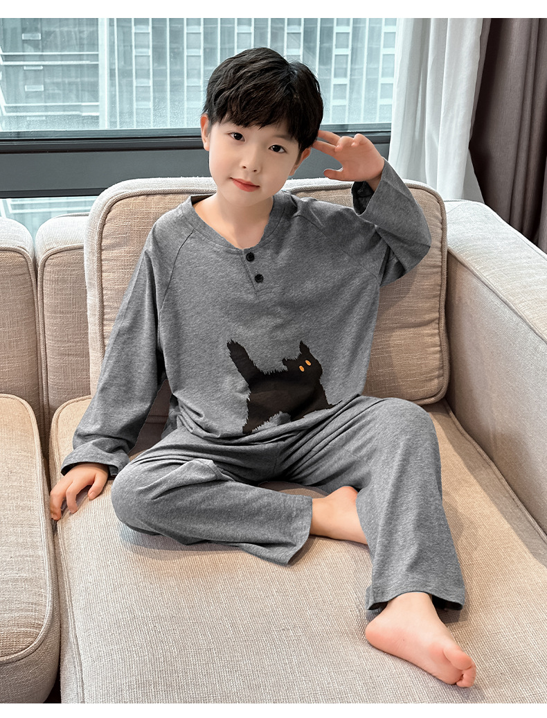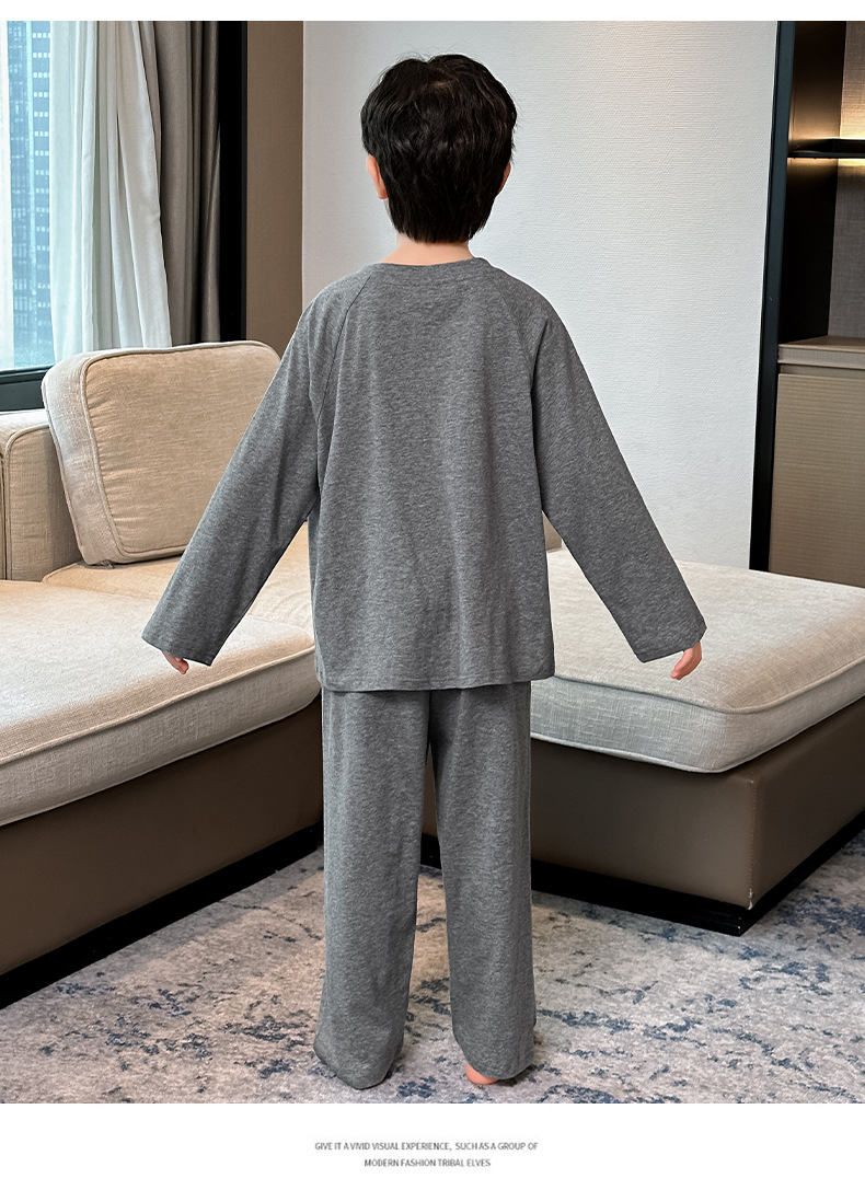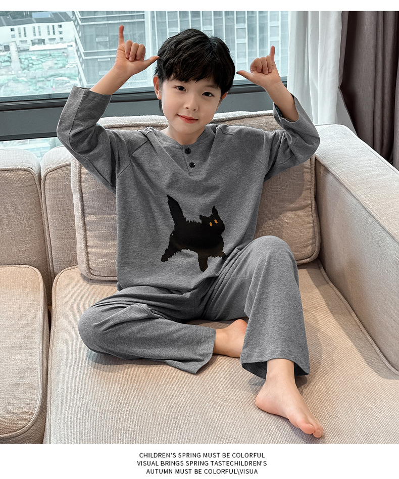 소년 잠옷 긴팔 봄, 가을 순수 면화 얇은 2025 새로운 큰 어린이 홈 의류 소년 스트라이프 양복스토어 가기
