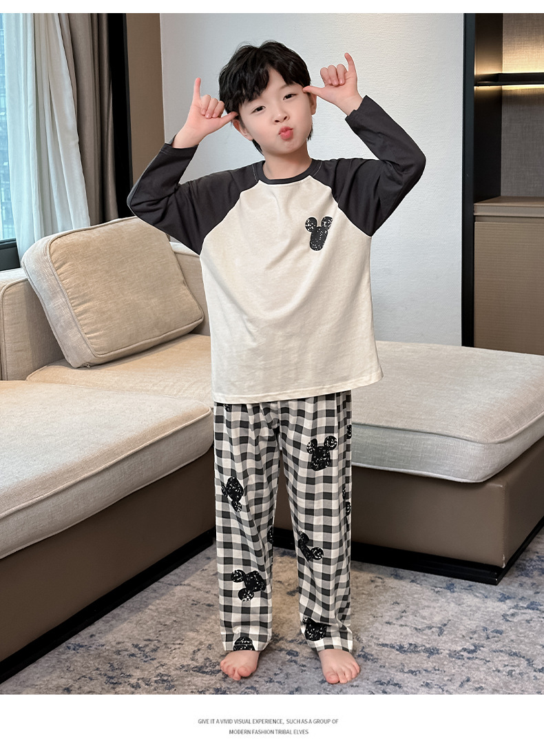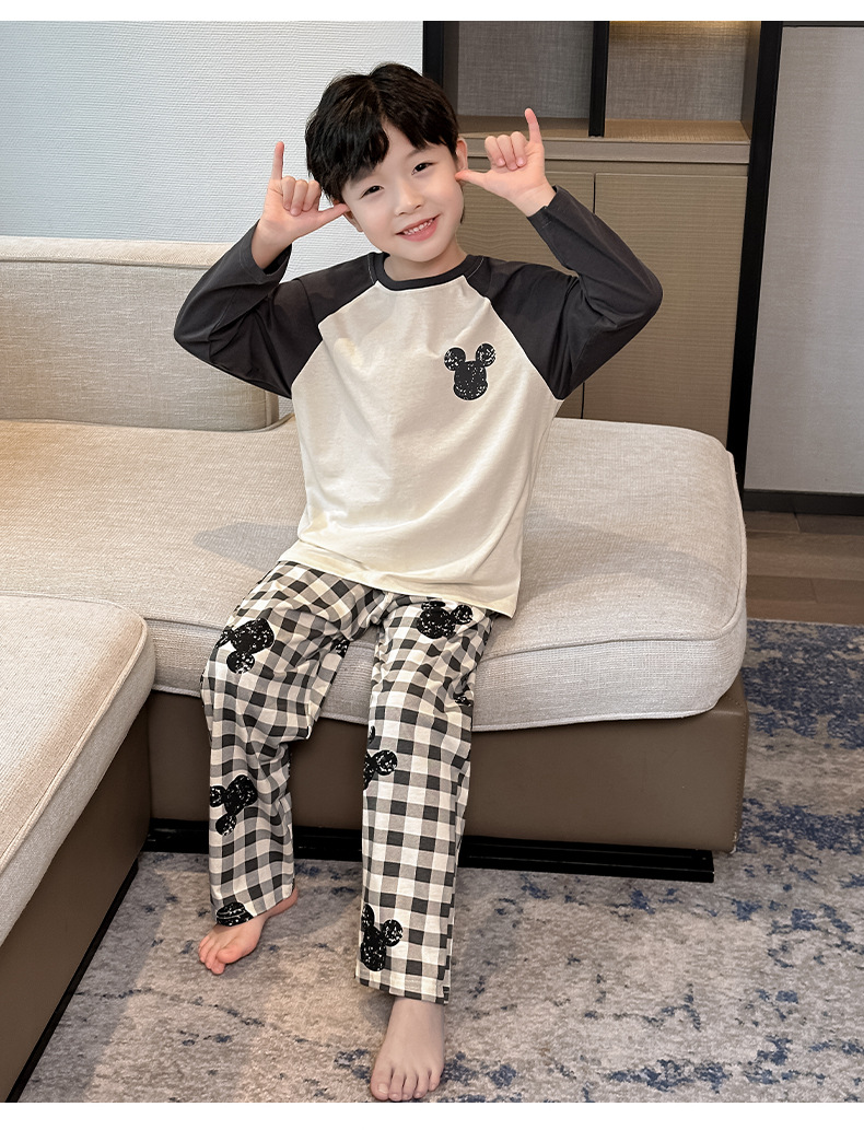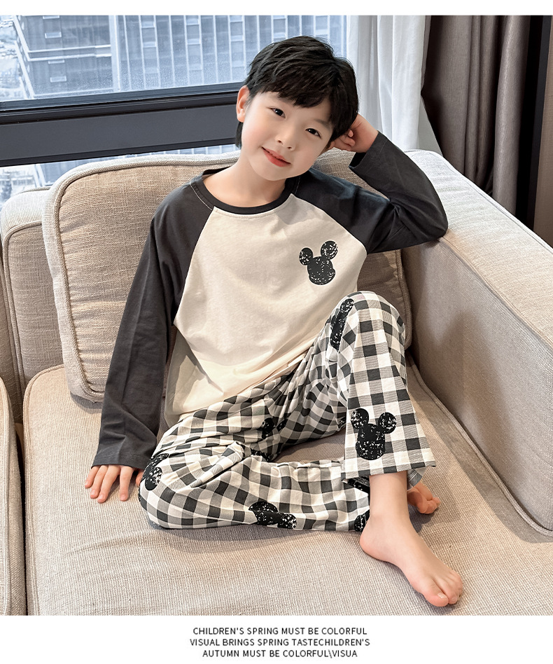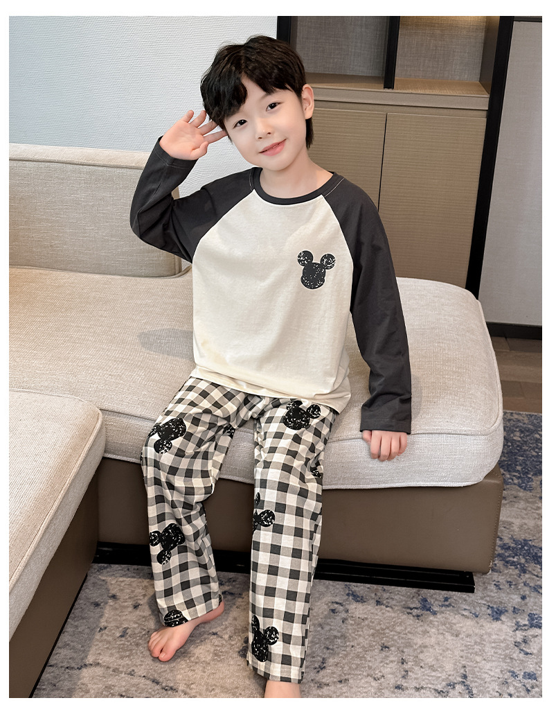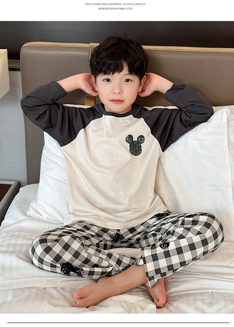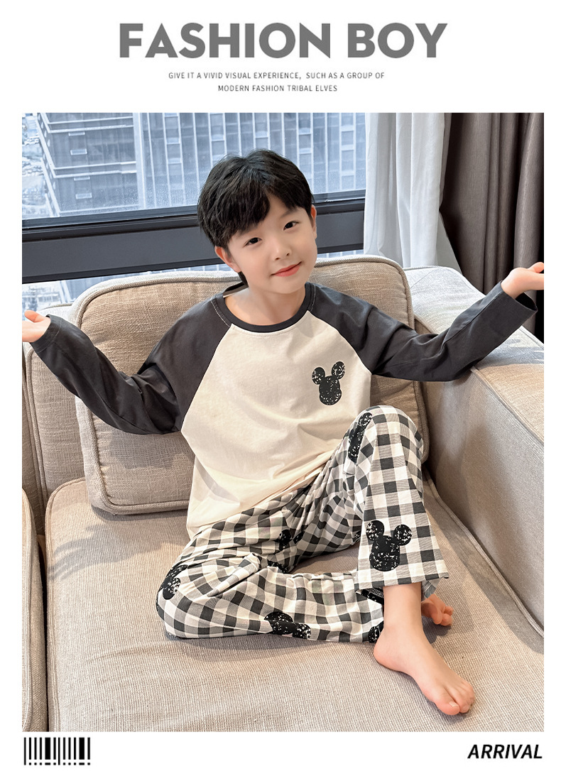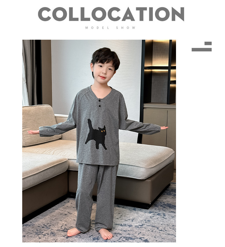 소년 잠옷 긴팔 봄, 가을 순수 면화 얇은 2025 새로운 큰 어린이 홈 의류 소년 스트라이프 양복스토어 가기