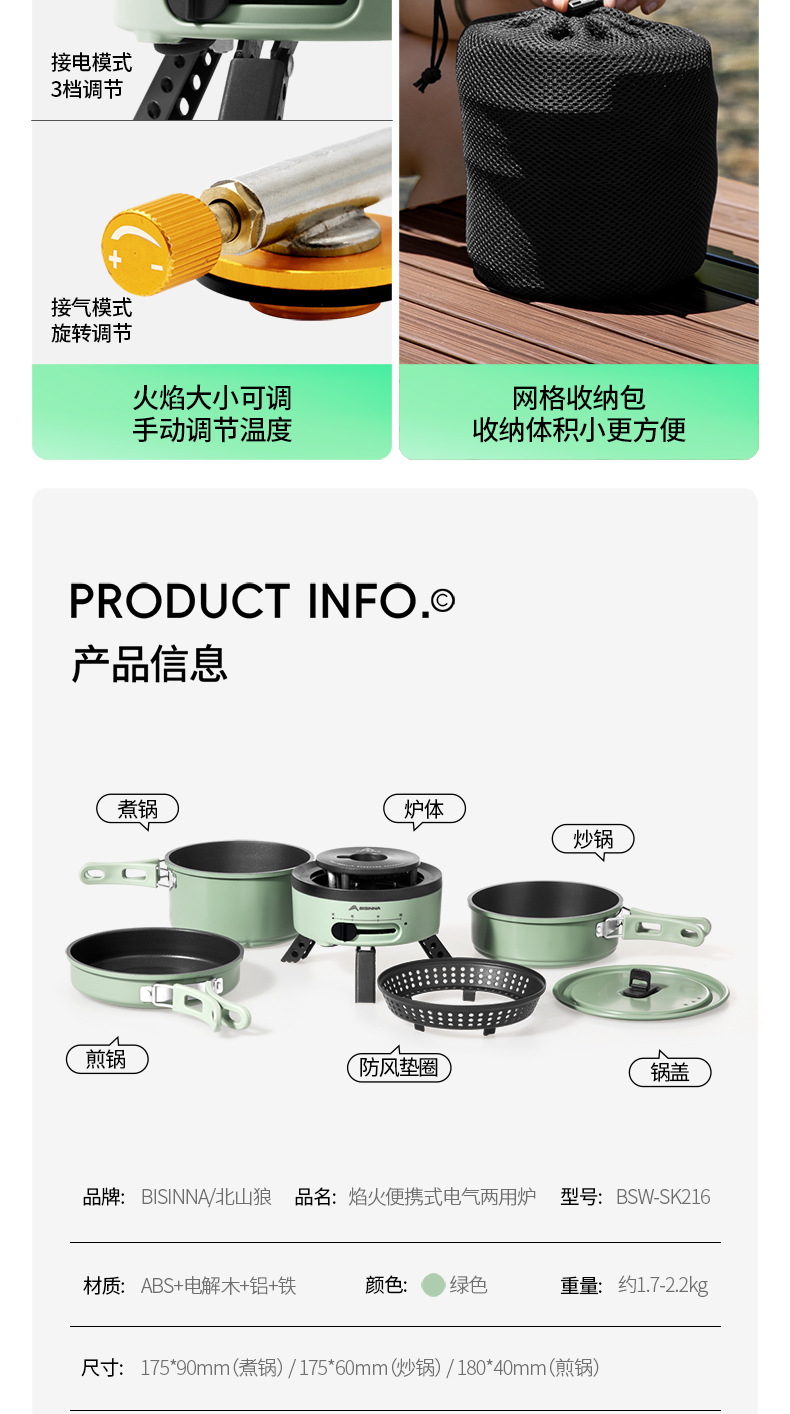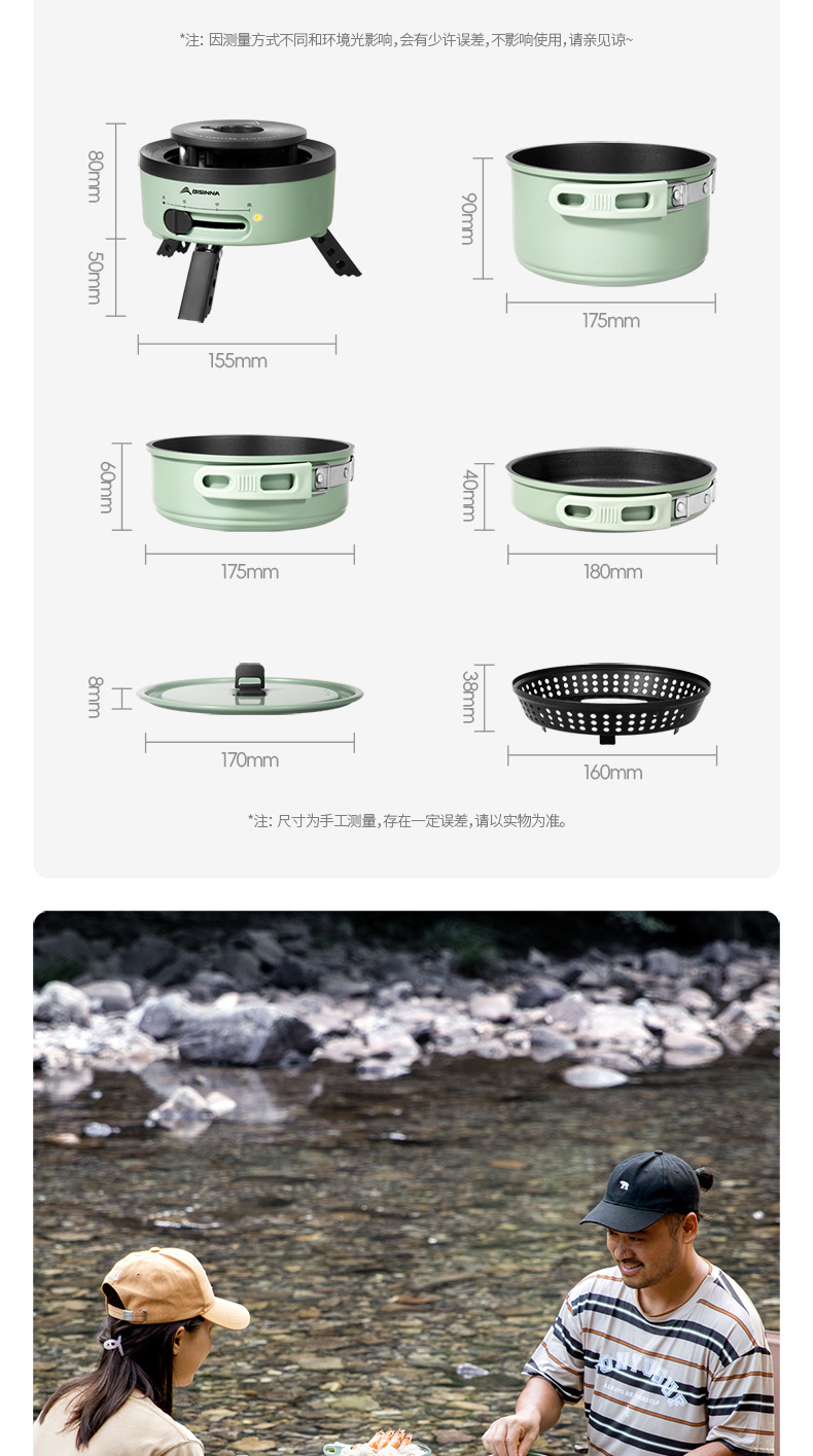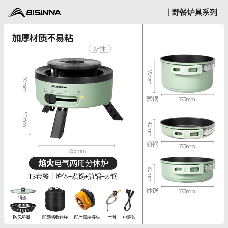 • 후르츠 그린 : T3 퍼니스 본체 + 요리 냄비 + 프라이팬 + 웍 [전기 겸용/수납 가방/어댑터 포함]