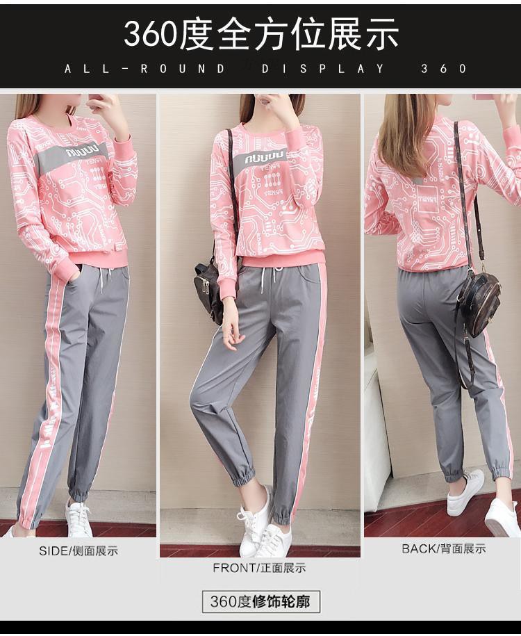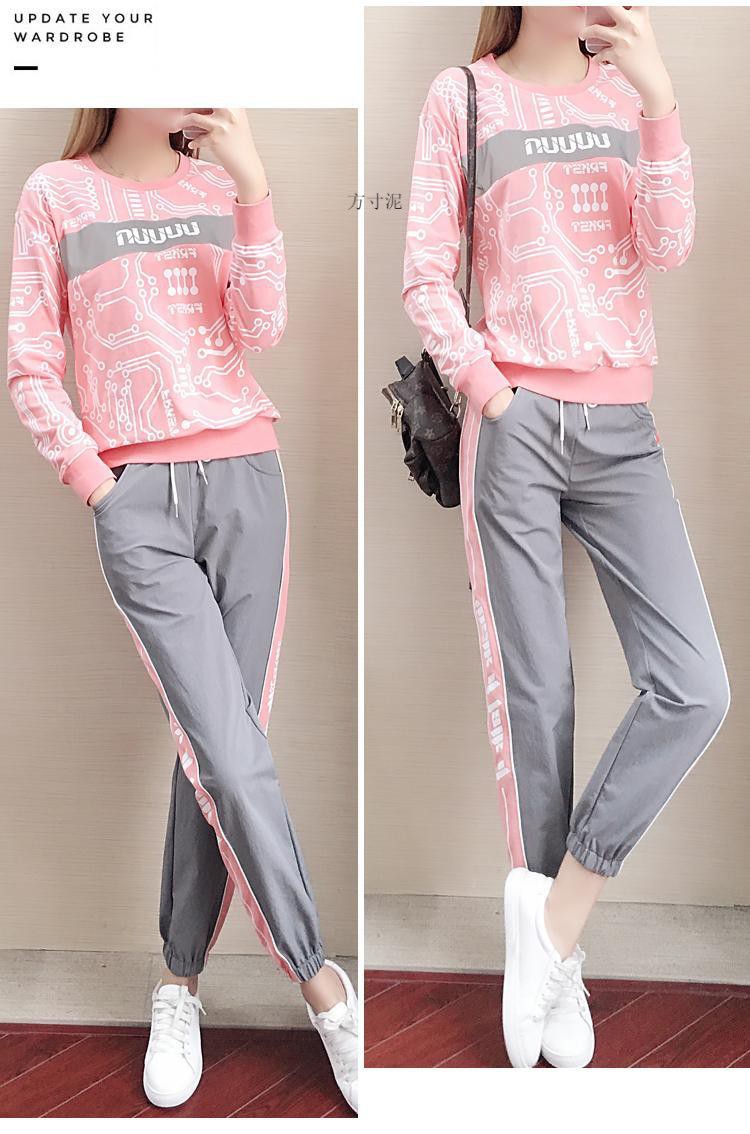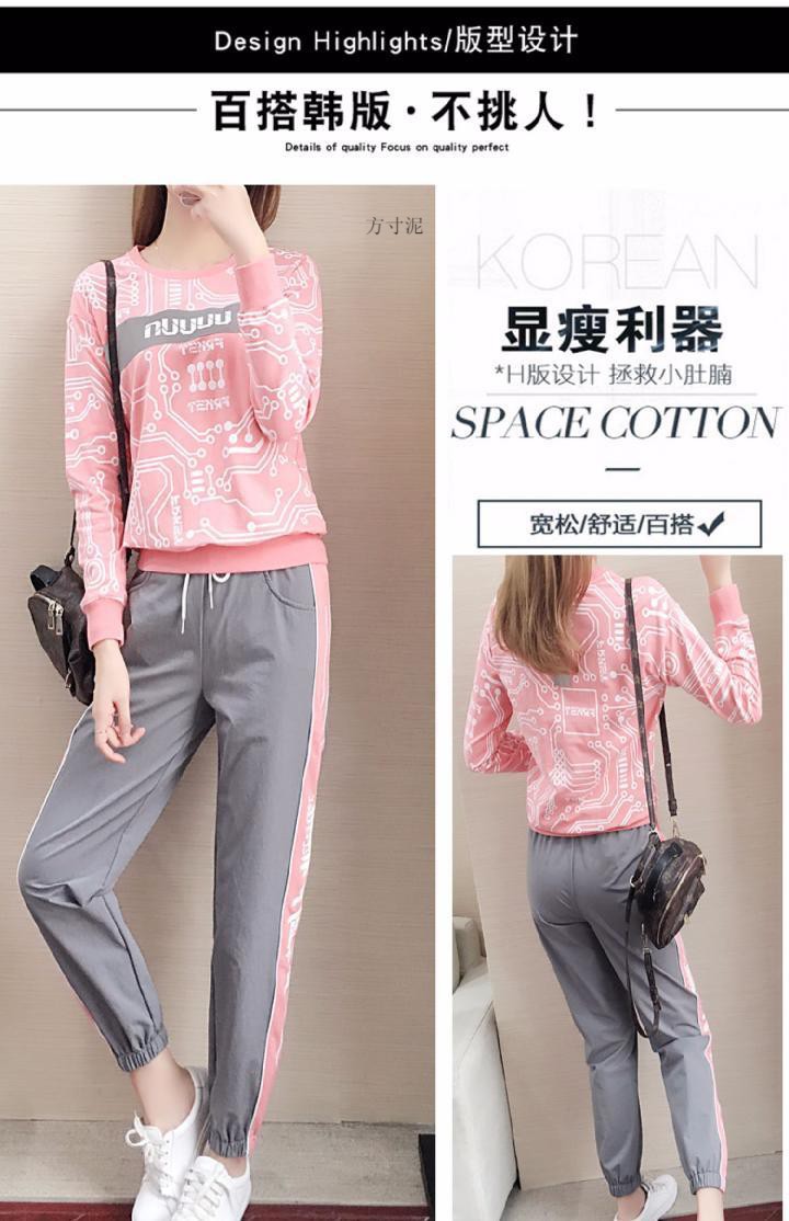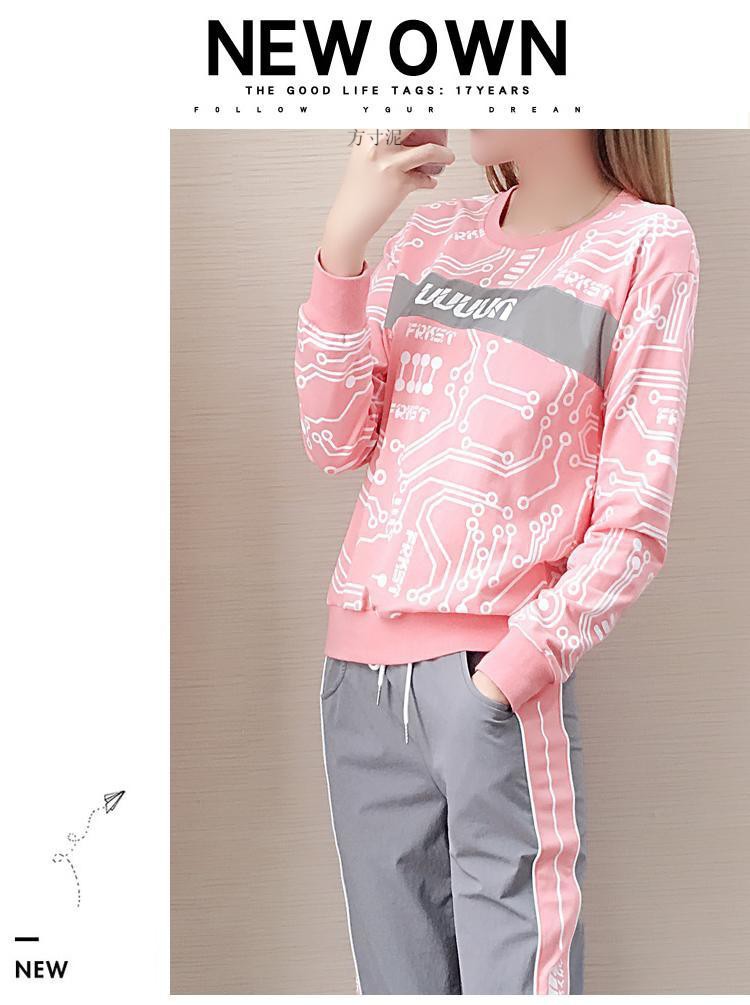 스포츠 세트 여성의 가을 새로운 패션 홍콩 맛 개인화 된 느슨한 캐주얼 착용 서양 스타일 러닝 투피스 트렌디 공급스토어 가기