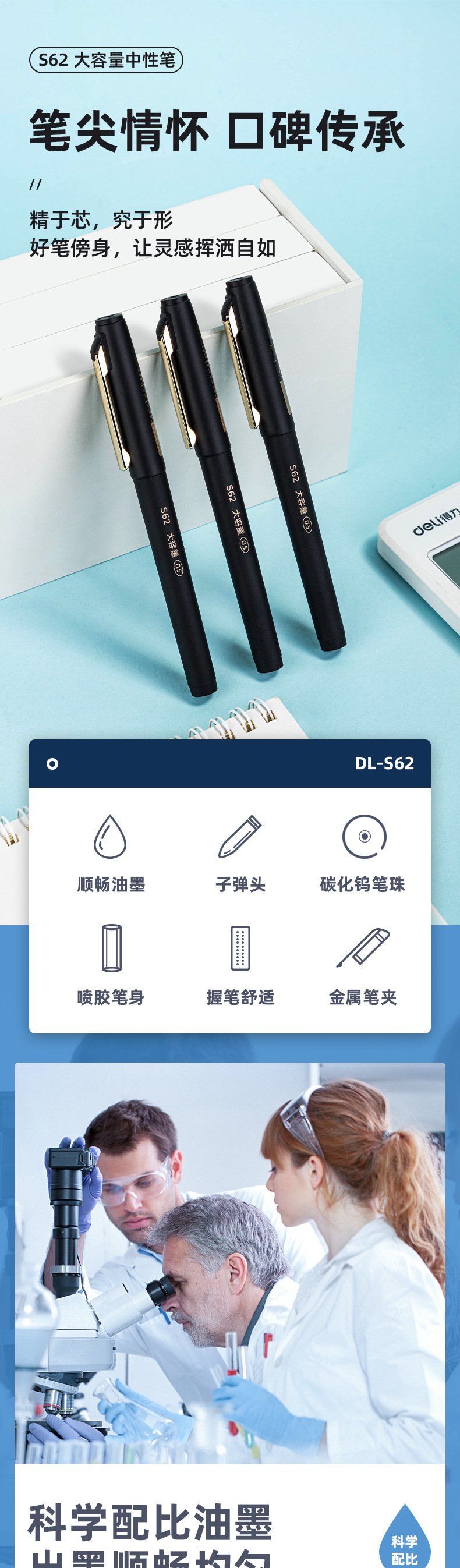 델리 S62 젤 펜 블랙 0.5mm 검사 브러시 펜 비즈니스 사무실 물 펜 총알 탄소 펜스토어 가기