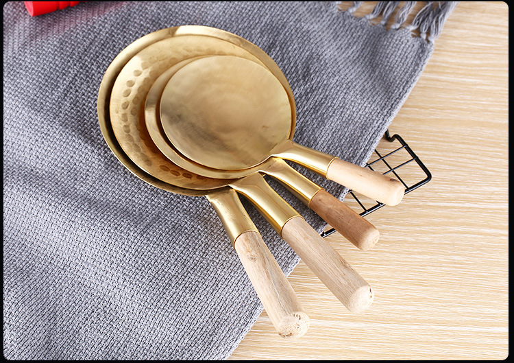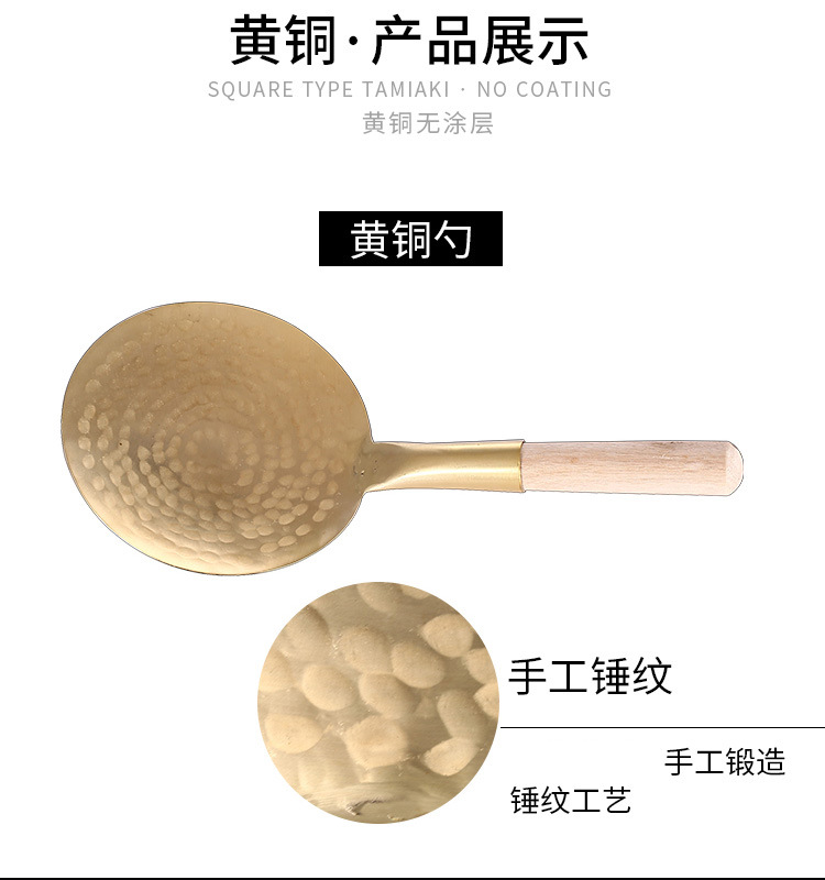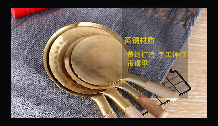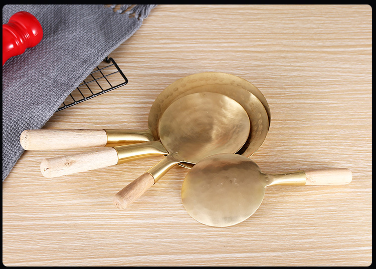 황동 두부 숟가락 나무 손잡이 두부 삽 두부 뇌 숟가락 구리 삽 구리 숟가락 해머 패턴 구리 두부 껍질 숟가락 가구