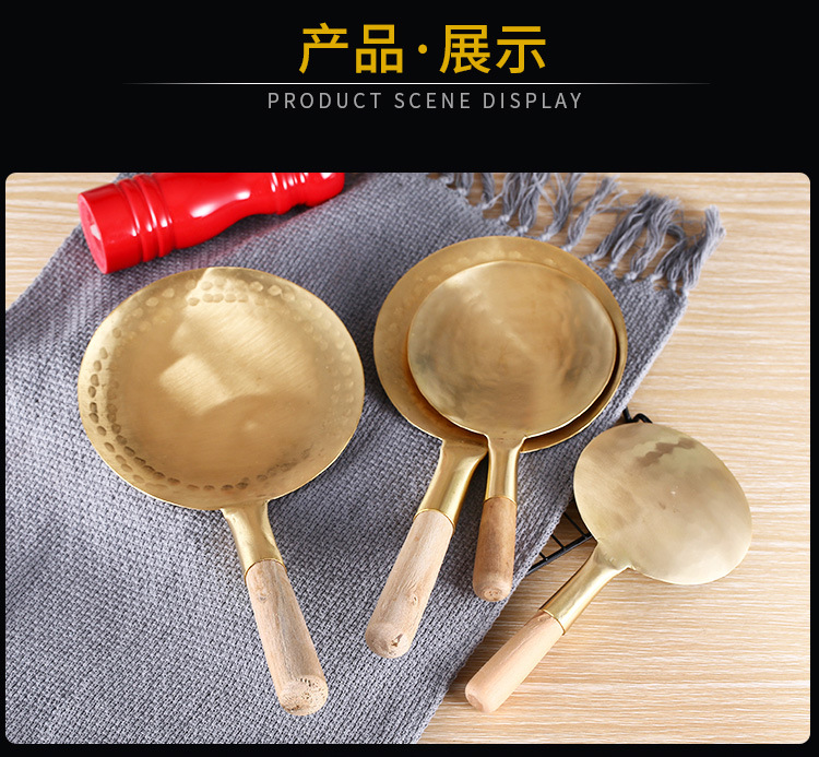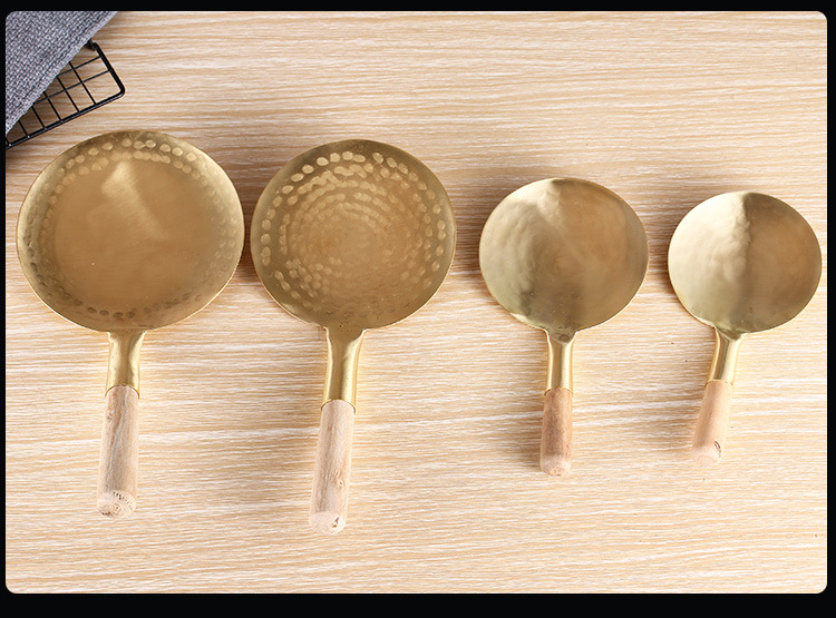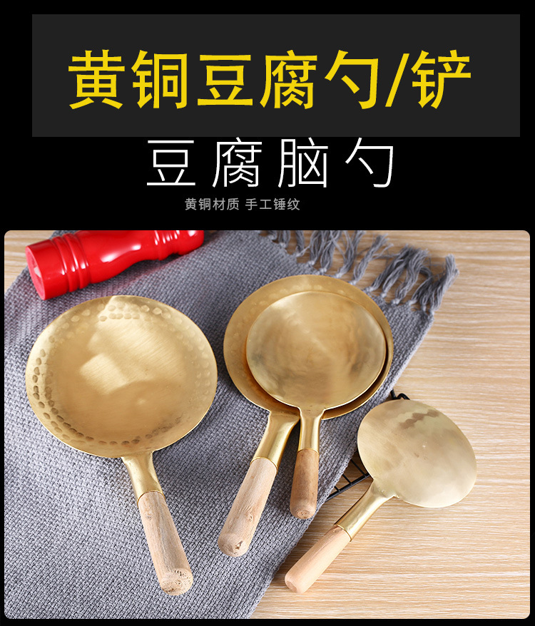 황동 두부 숟가락 나무 손잡이 두부 삽 두부 뇌 숟가락 구리 삽 구리 숟가락 해머 패턴 구리 두부 껍질 숟가락 가구스토어 가기