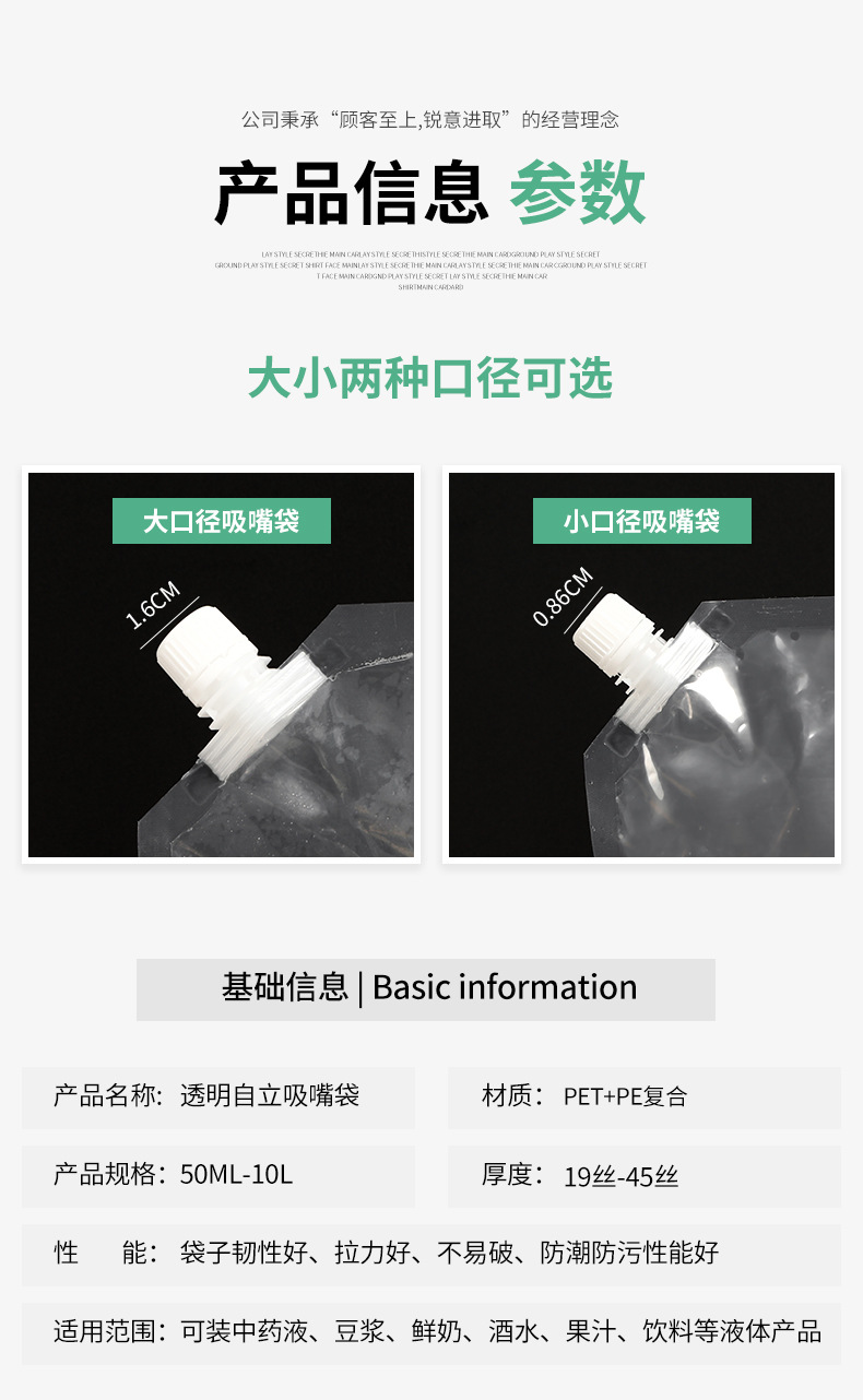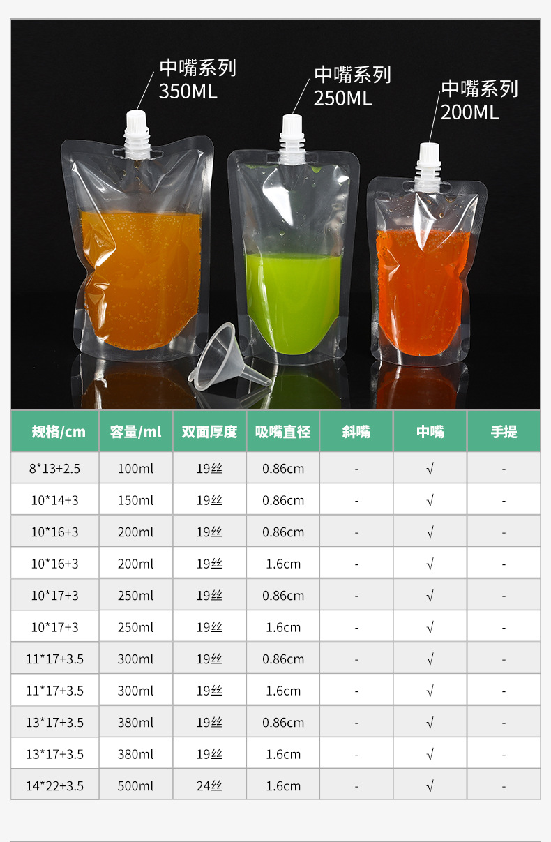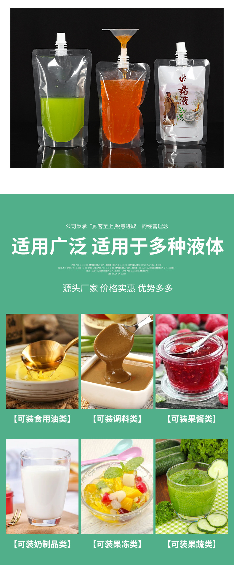 맞춤형 식품 등급 두유 주스 가방, 스탠드 업 백, 투명 곡물 가방, 한약 액체 가방, 노즐 가방 도매