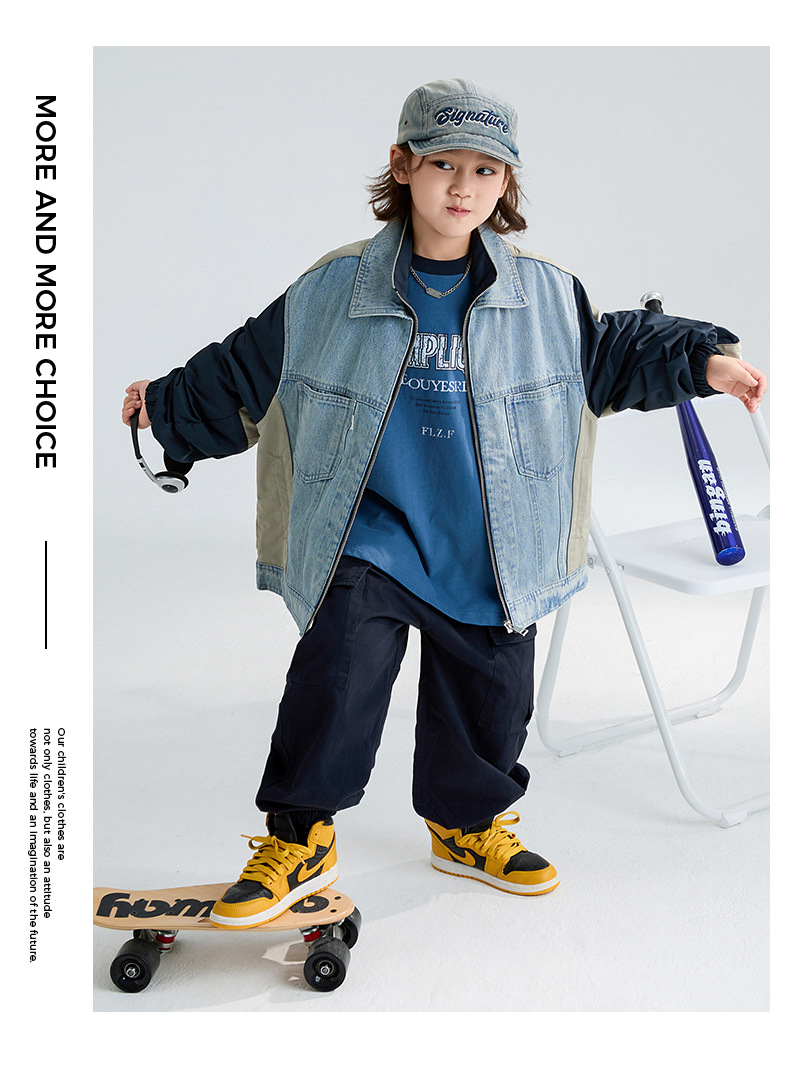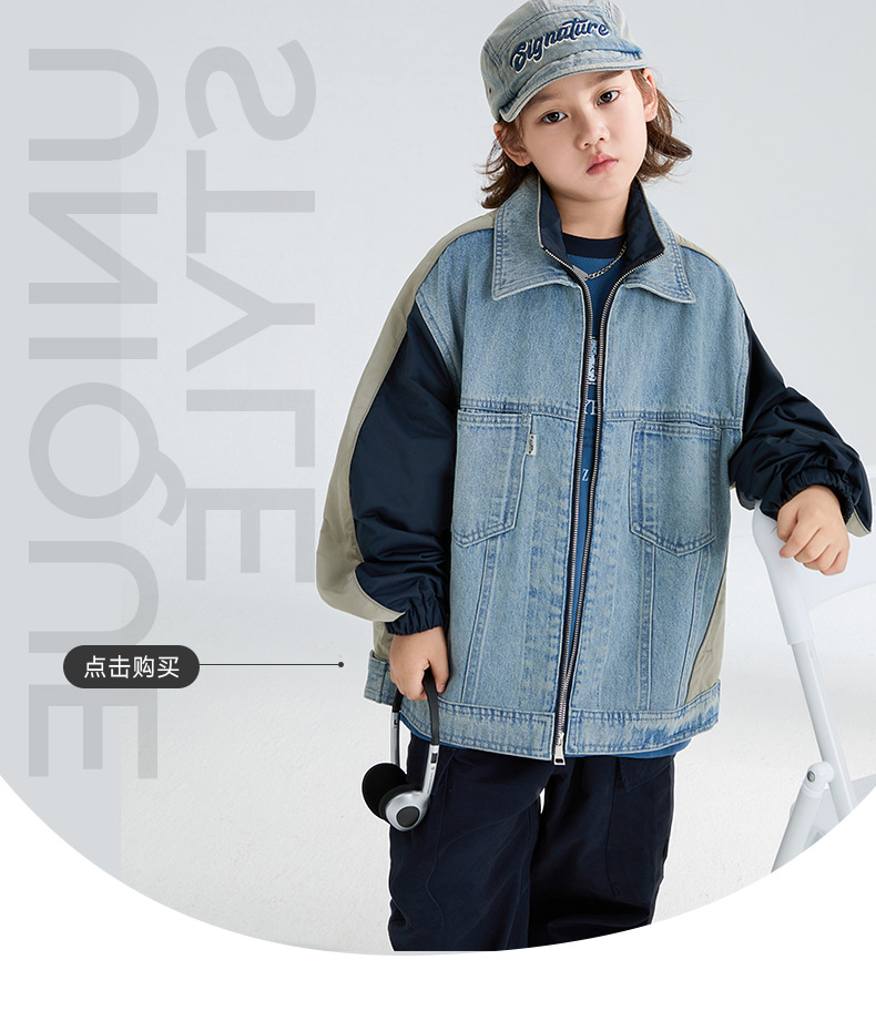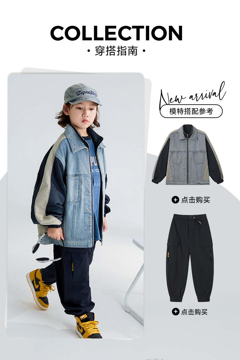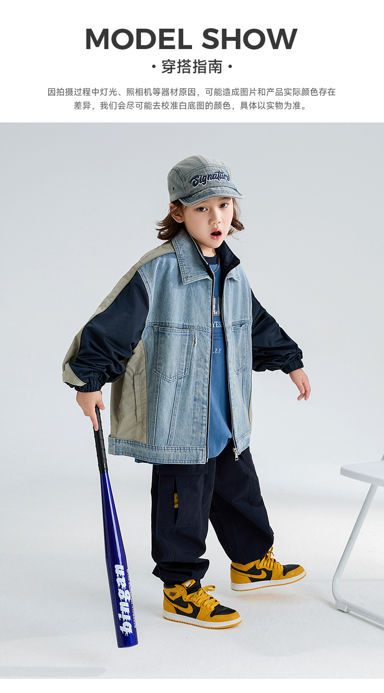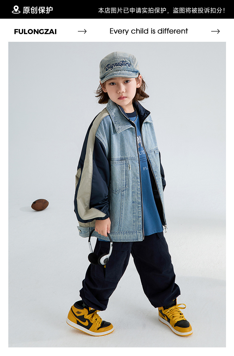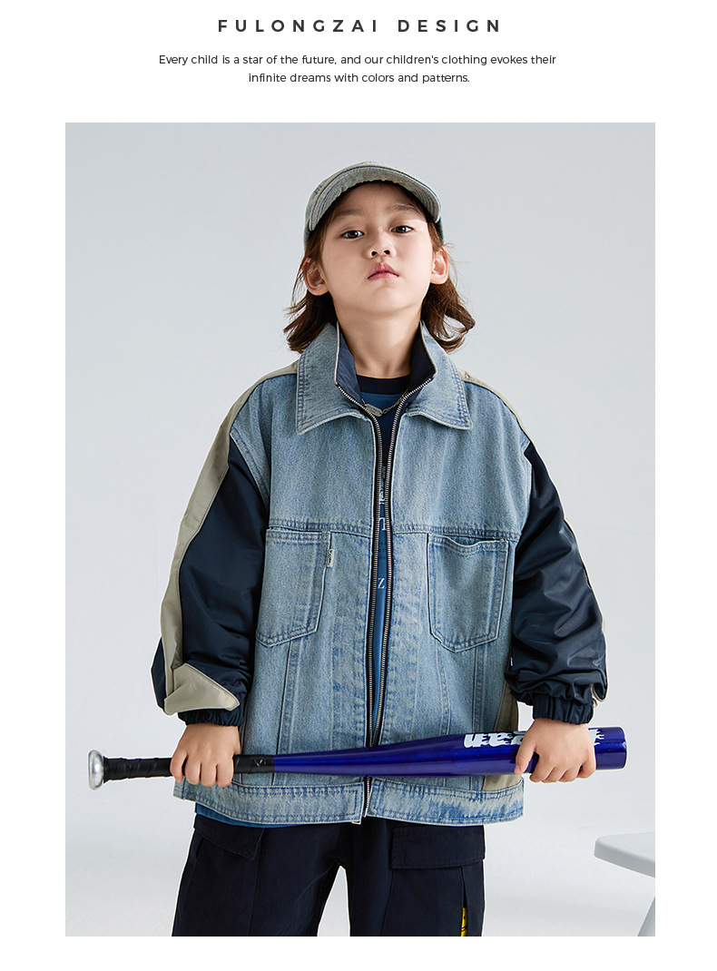 FULONGZAI 부모-자식 아동복 2024 가을 소년 소녀 신상 중대형 아동 데님 트렌디 브랜드 짧은 재킷스토어 가기