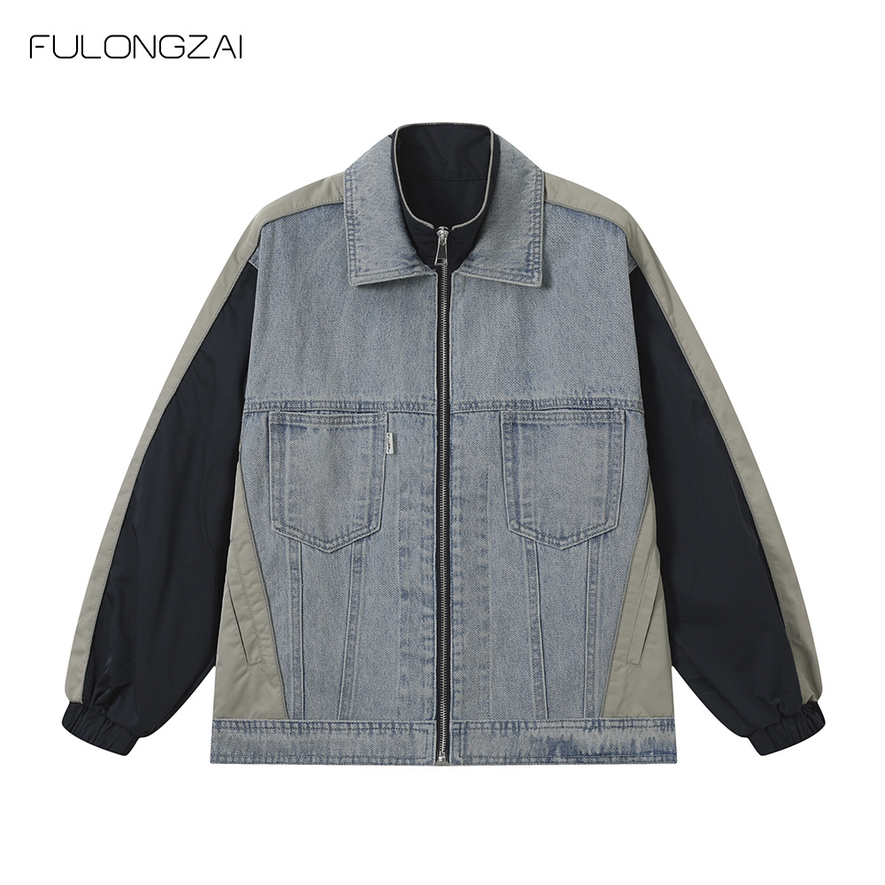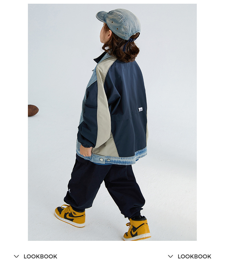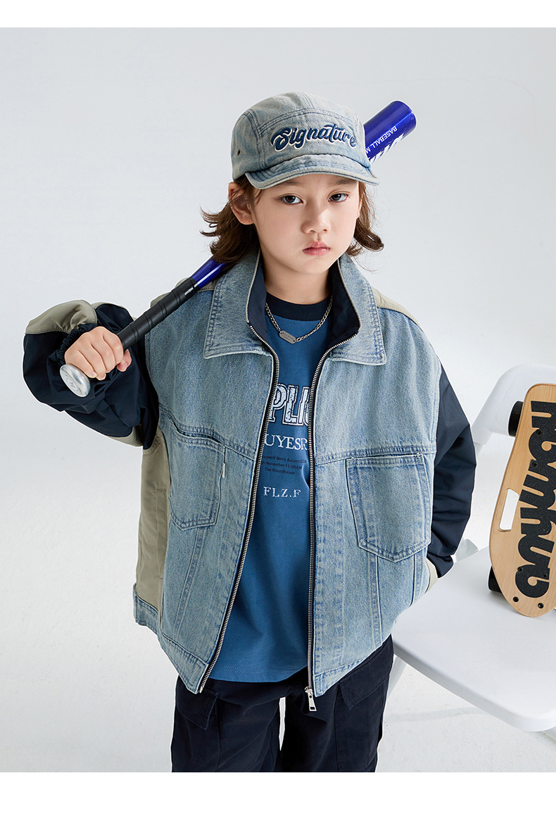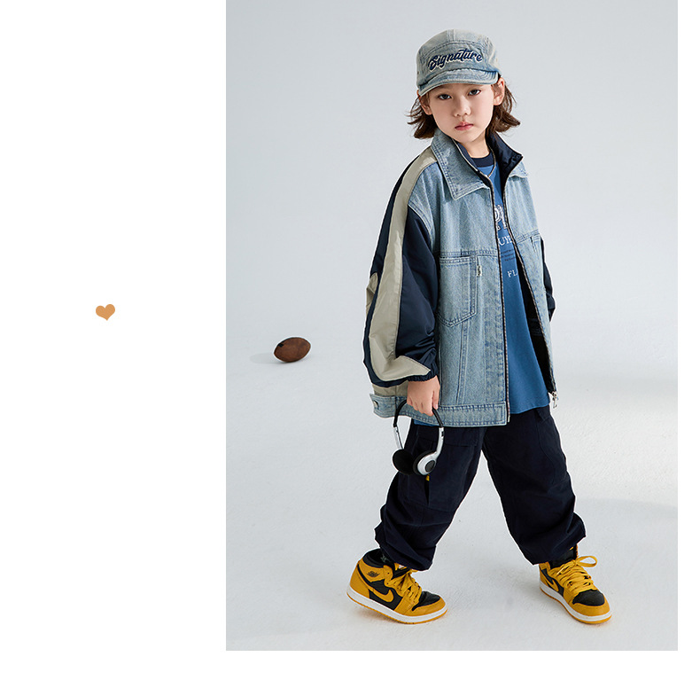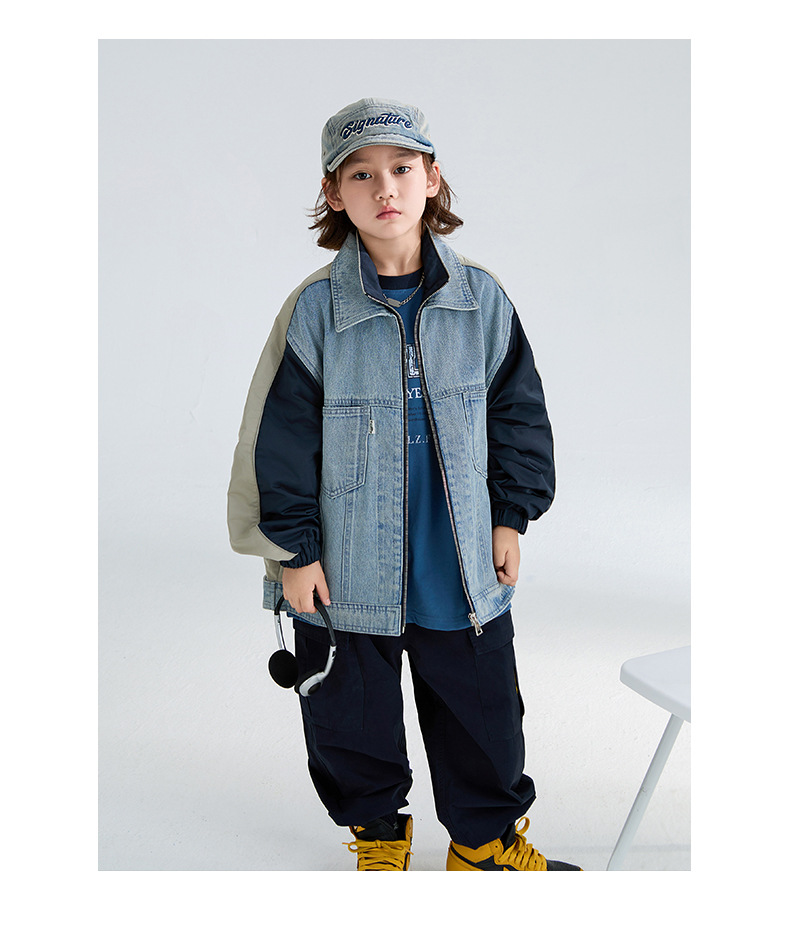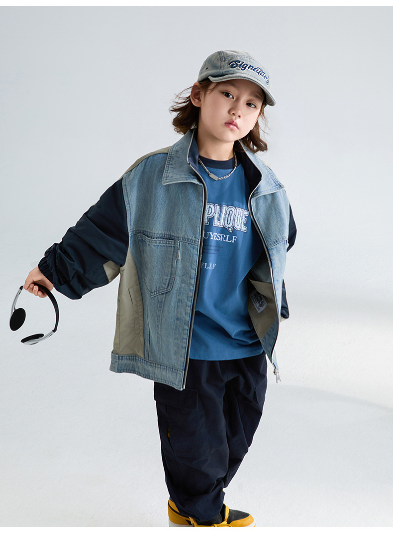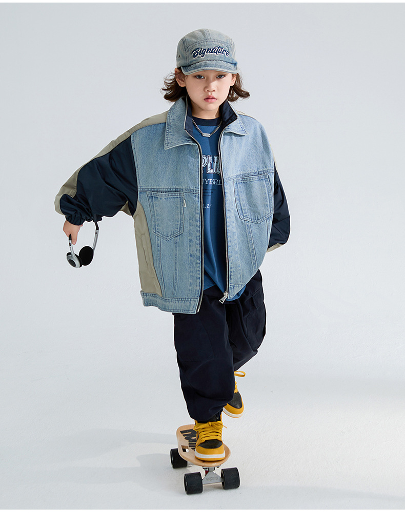 FULONGZAI 부모-자식 아동복 2024 가을 소년 소녀 신상 중대형 아동 데님 트렌디 브랜드 짧은 재킷스토어 가기