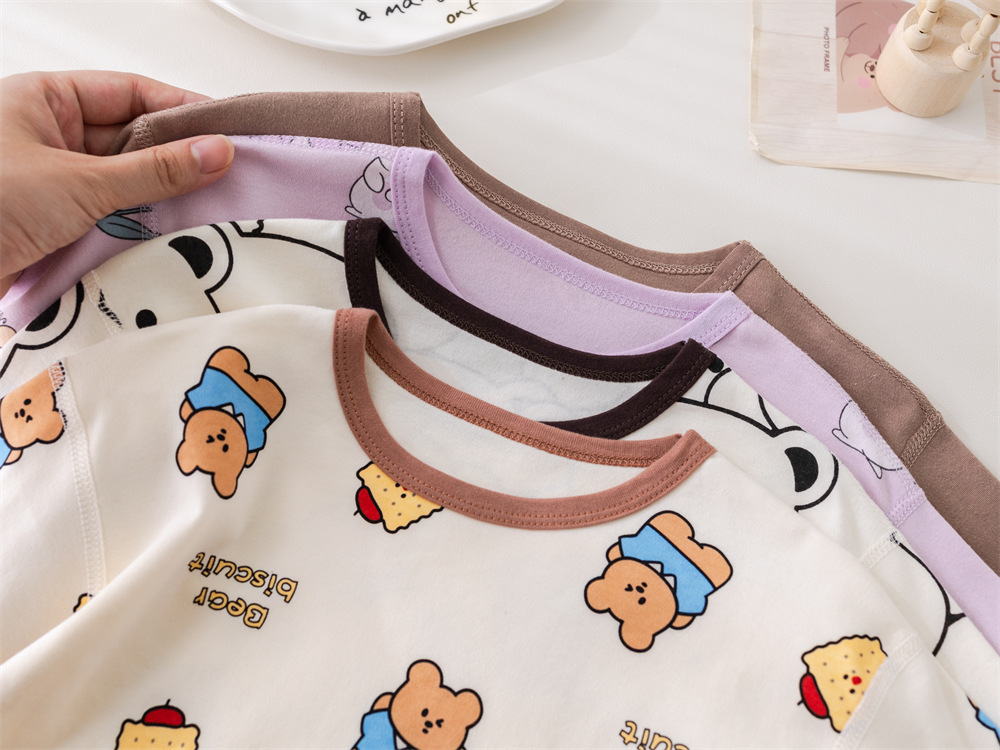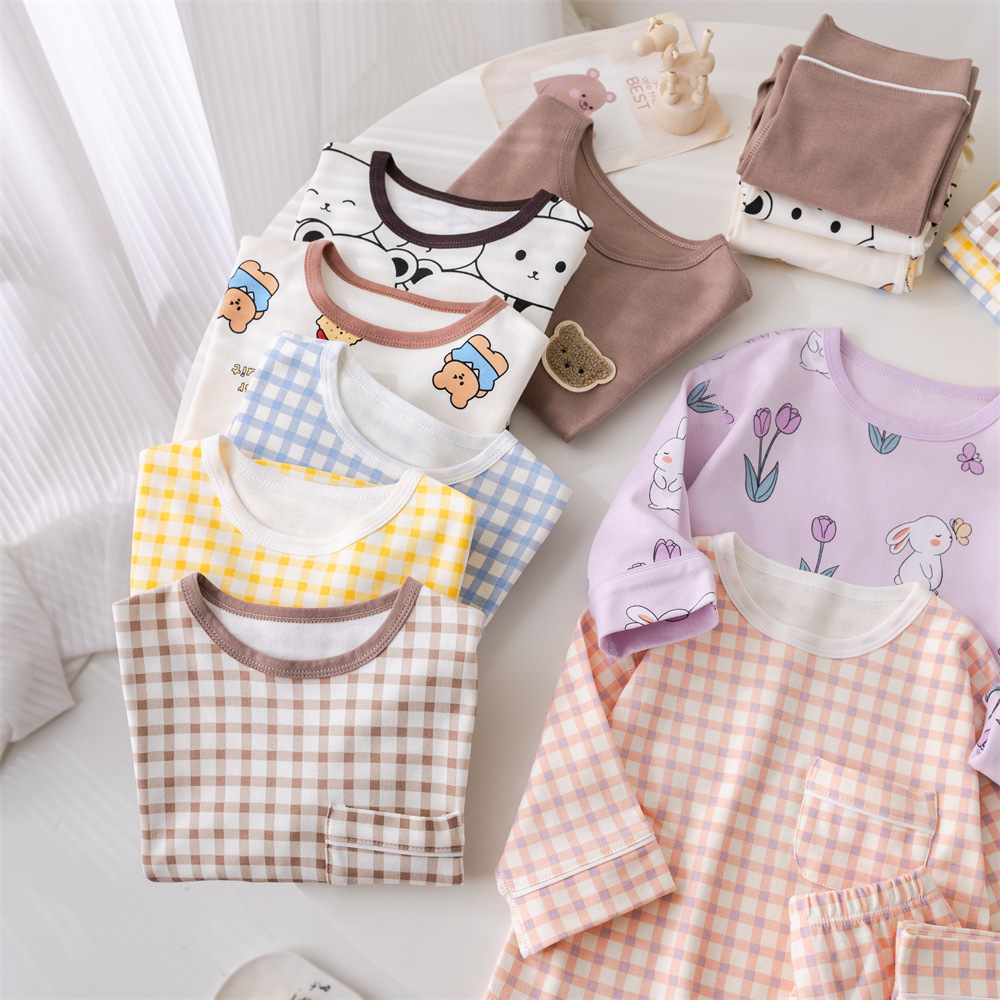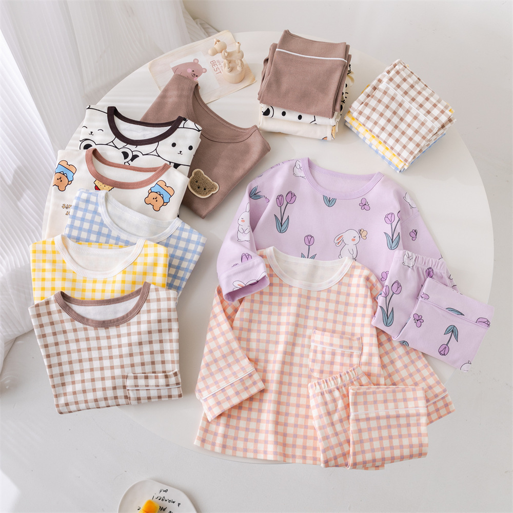 2024 새로운 어린이 잠옷 소년 봄과 가을 긴 소매 면 아기 소녀 큰 어린이 집 옷 홈 옷