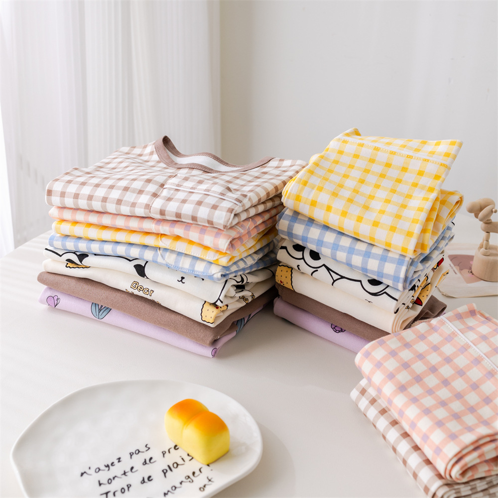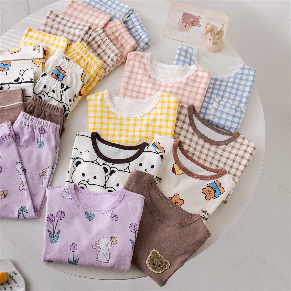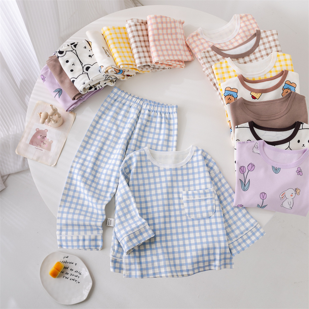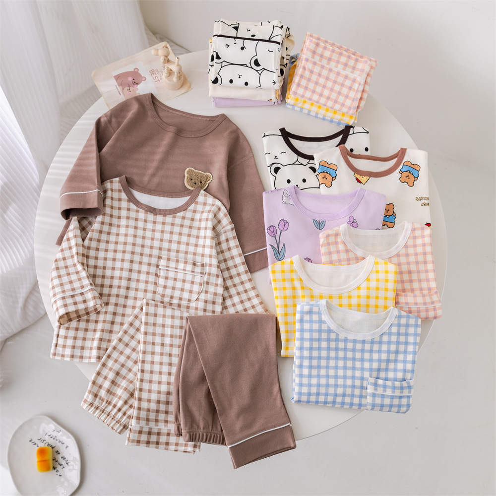 2024 새로운 어린이 잠옷 소년 봄과 가을 긴 소매 면 아기 소녀 큰 어린이 집 옷 홈 옷스토어 가기
