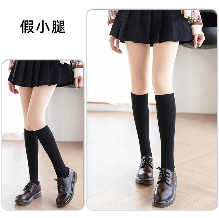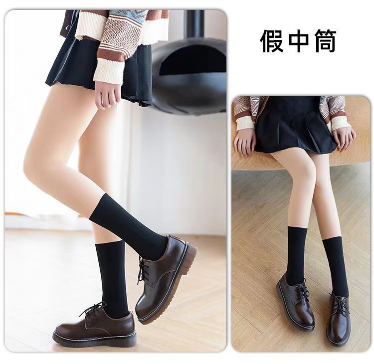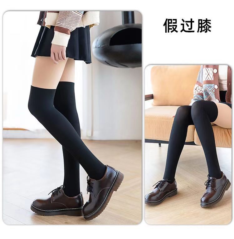 3-in-1 레깅스 팬티스타킹, 페이크 레깅스, JK 스타킹, 안전벨트가 있는 스플라이스 팬츠, 벨벳 누드 느낌의 무릎 위 레깅스 팬티스타킹스토어 가기