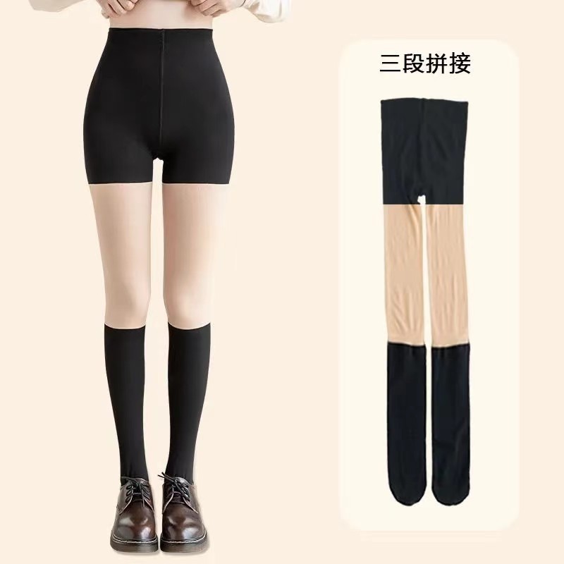 3-in-1 레깅스 팬티스타킹, 페이크 레깅스, JK 스타킹, 안전벨트가 있는 스플라이스 팬츠, 벨벳 누드 느낌의 무릎 위 레깅스 팬티스타킹