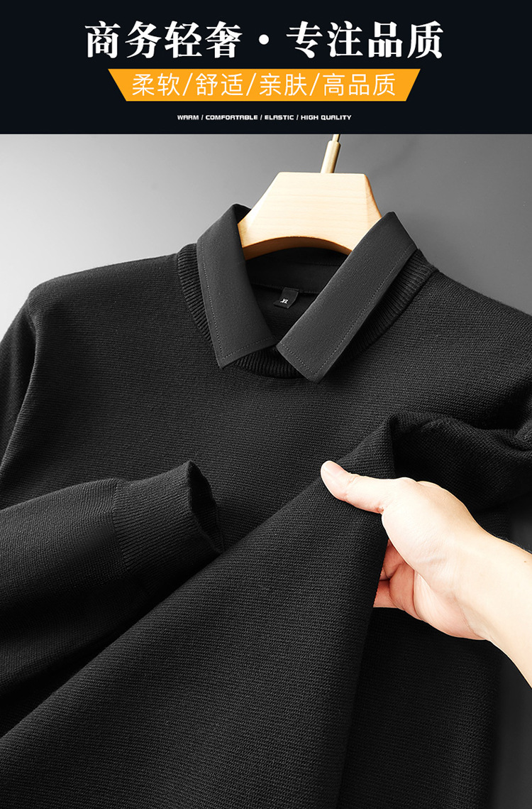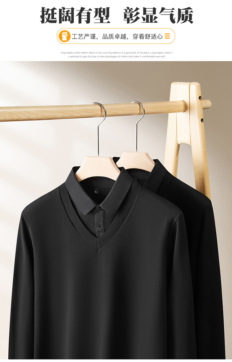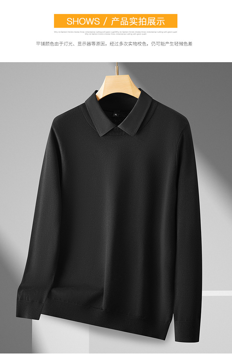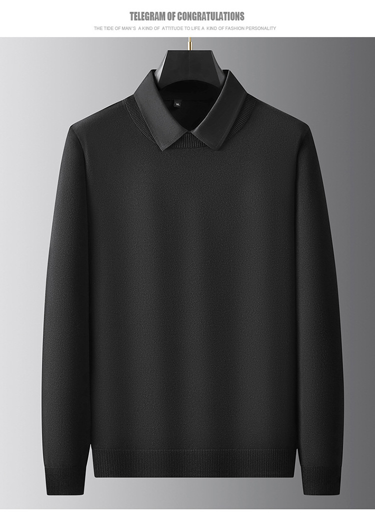 2024 년 가을 뚱뚱한 형제 새로운 남성 플러스 뚱뚱한 플러스 사이즈 가짜 투피스 스웨터 남성용 뚱뚱한 니트 베이스 셔츠스토어 가기