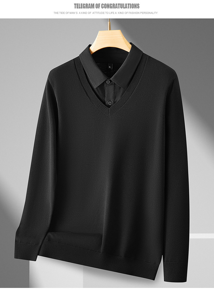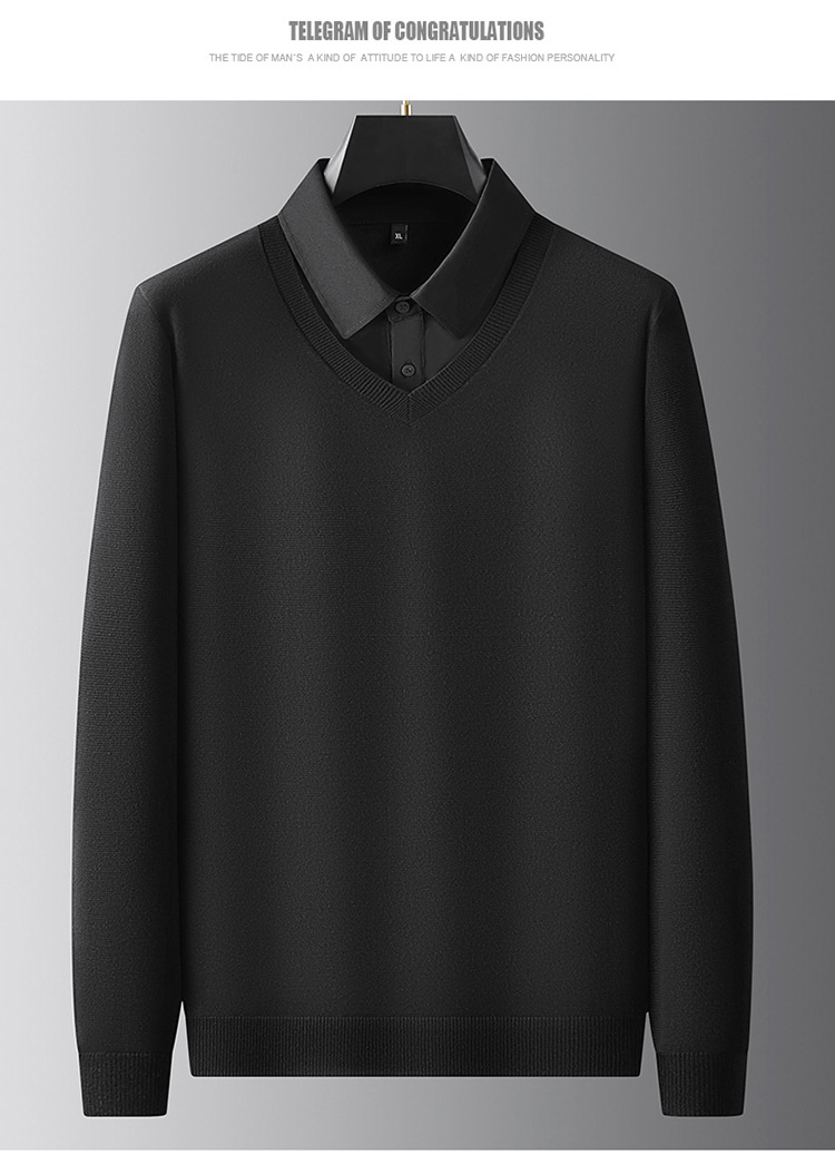 2024 년 가을 뚱뚱한 형제 새로운 남성 플러스 뚱뚱한 플러스 사이즈 가짜 투피스 스웨터 남성용 뚱뚱한 니트 베이스 셔츠