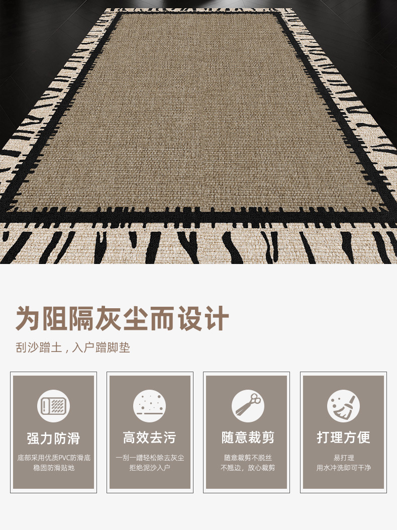 실크 후프 바닥 매트, 간단한 가정용, 얼룩 방지, 내마모성, 관리 용이, 발 매트, 진흙 긁기 및 먼지 제거, 절단 가능한 현관 바닥 매트 도매