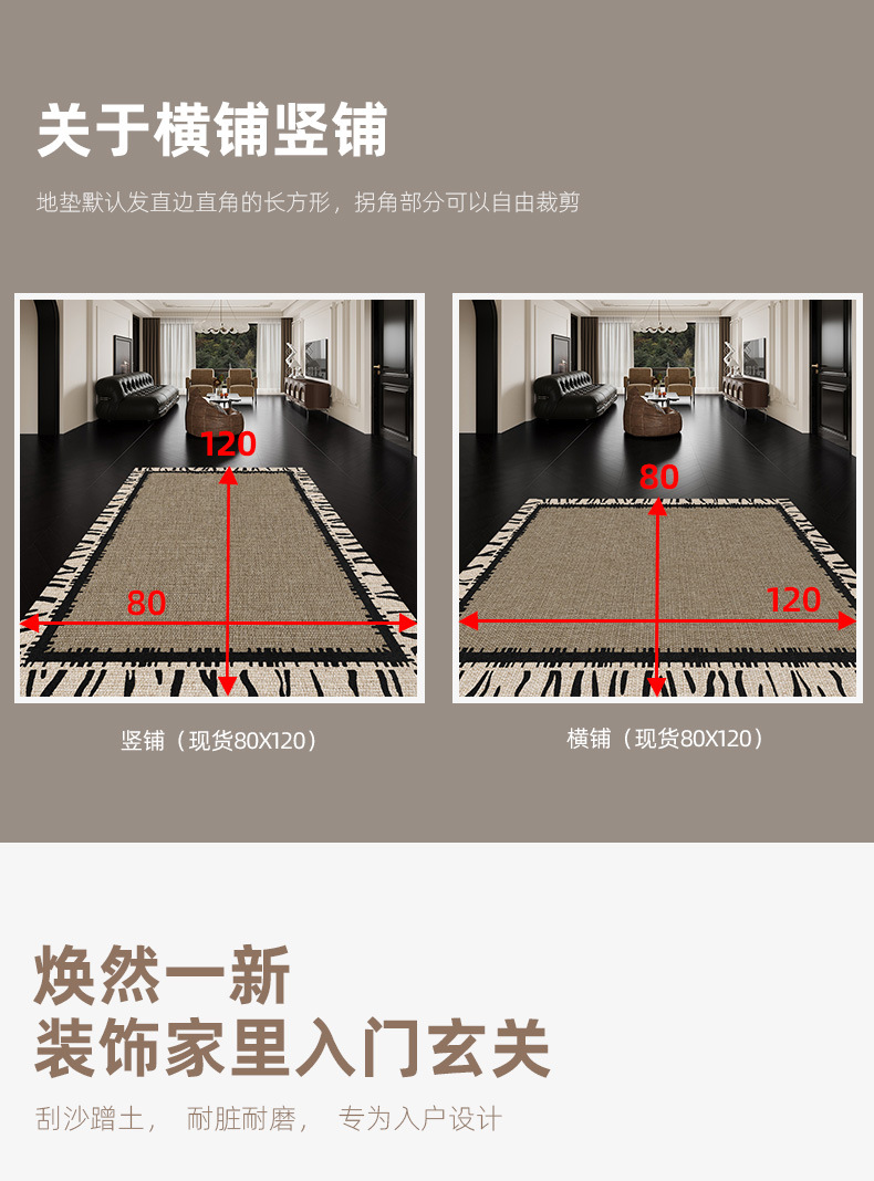 실크 후프 바닥 매트, 간단한 가정용, 얼룩 방지, 내마모성, 관리 용이, 발 매트, 진흙 긁기 및 먼지 제거, 절단 가능한 현관 바닥 매트 도매스토어 가기