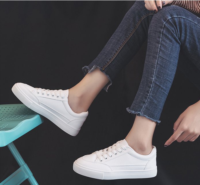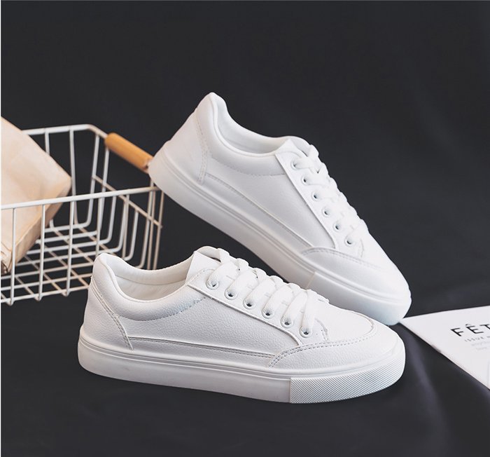 도매 평면 흰색 캐주얼 흰색 신발 2024 새로운 라운드 토 레이스 업 로우 힐 보드 신발 패션 조커 싱글 신발 여성스토어 가기