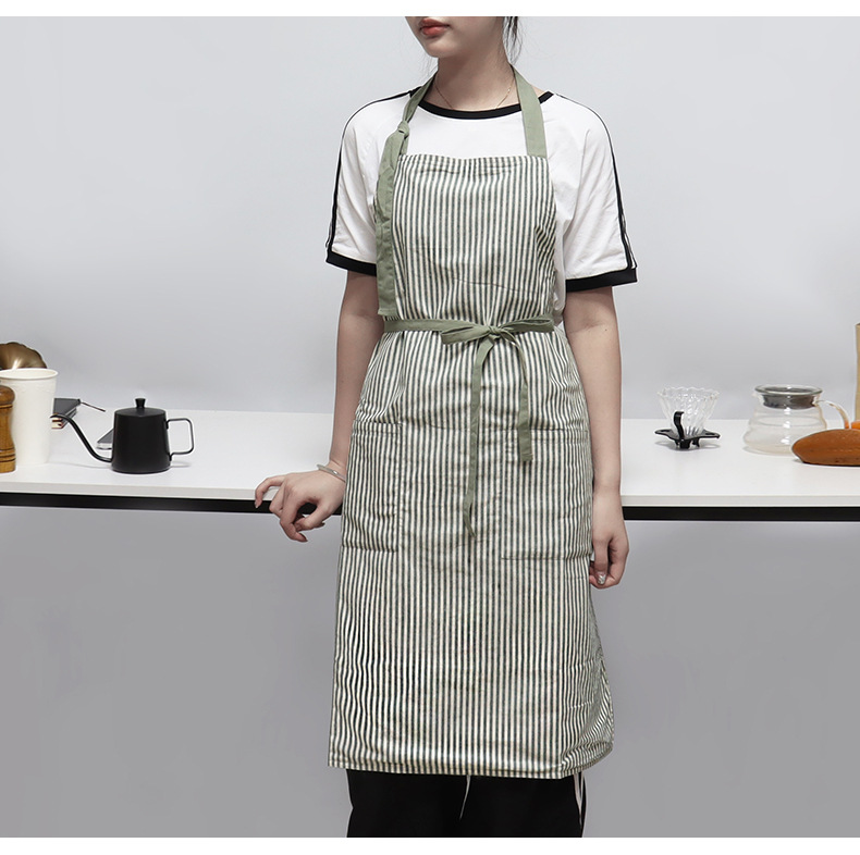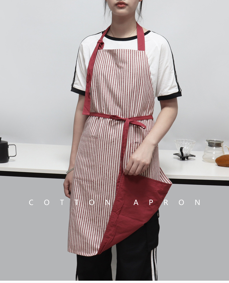아마존 스트라이프 면 앞치마 꽃 우유 차 가게 주방 가정 요리 성인 작업 면직물스토어 가기