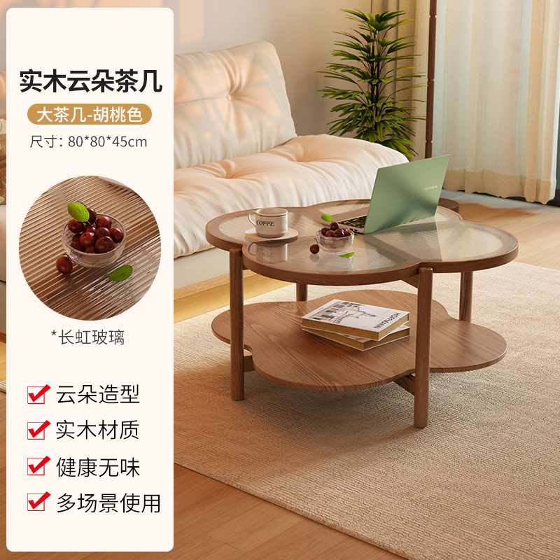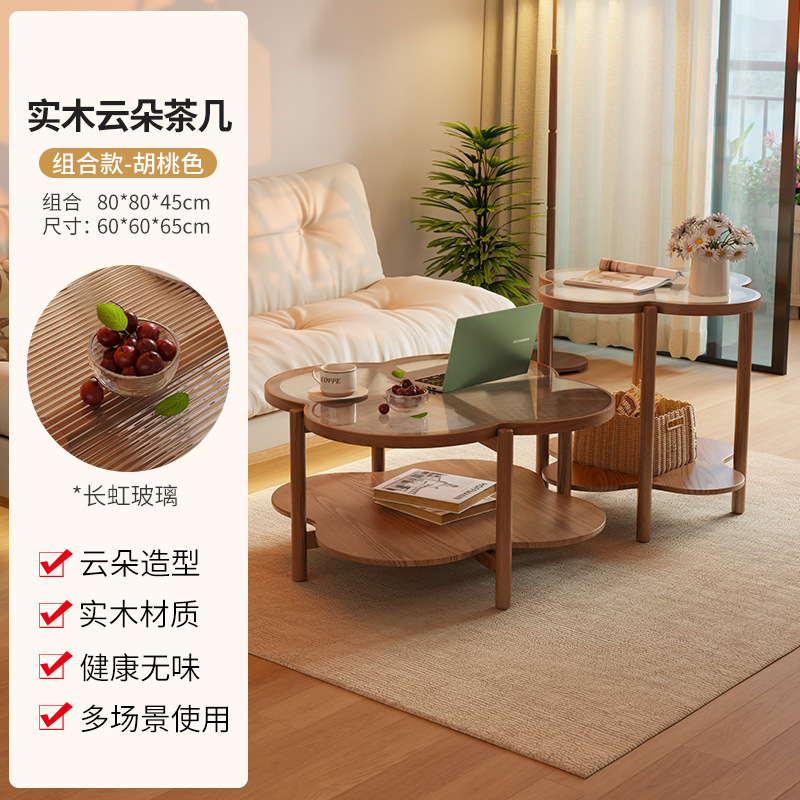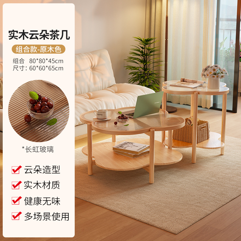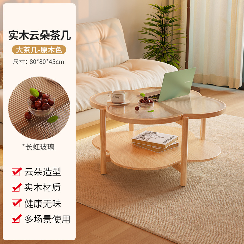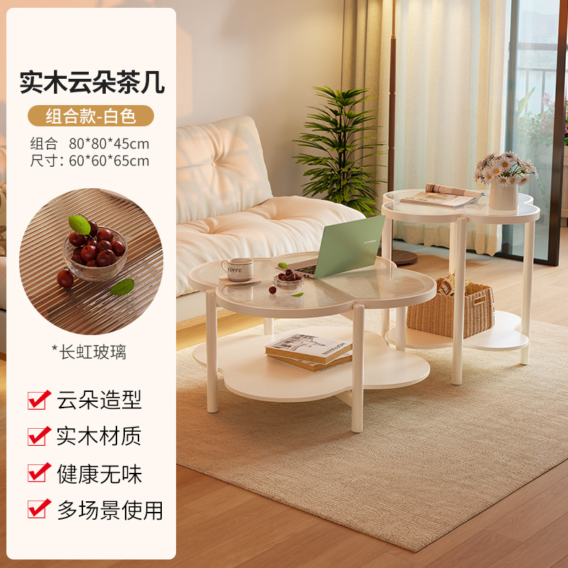 새로운 스타일 클라우드 커피 테이블 북유럽 솔리드 우드 거실 가정용 간단한 현대 작은 아파트 크림 사일런트 스타일 인터넷 연예인 커피 테이블