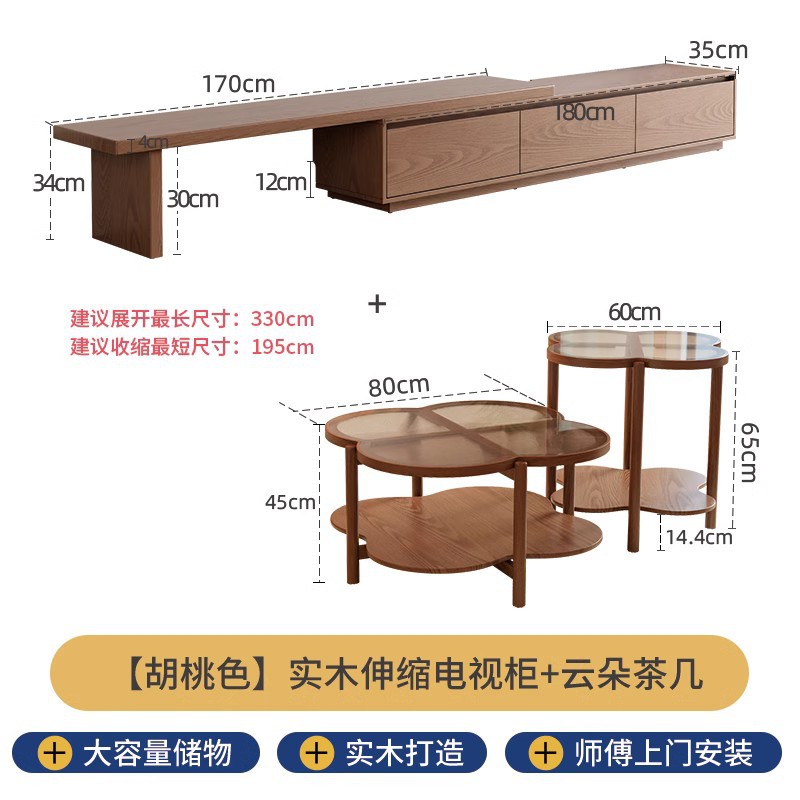 • [원목 커피 테이블] 60CM+80CM-월넛 컬러 패키지 설치