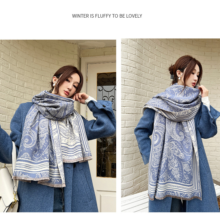 가을과 겨울 새로운 스타일 스카프 여성의 2024 패션 두꺼운 민족 스타일 모방 캐시미어 스카프 목 보호 따뜻한 술 목도리스토어 가기