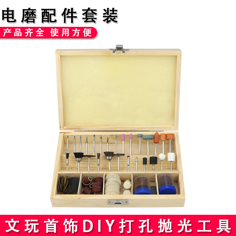 연삭 휠 연삭 헤드 나무 나무 조각 뿌리 조각 옥 바디 조각 연마 도구 전기 연삭 액세서리 소모품이 장착 된 나무 상자