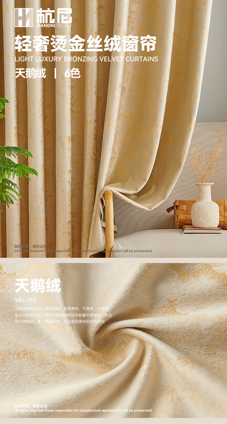 가벼운 럭셔리 스타일, 다양한 색상 선택 가능, 금박 벨벳 커튼, 꽃무늬 암막 커튼, 가정용 창문 장식, 해외 직구 완제품 커튼