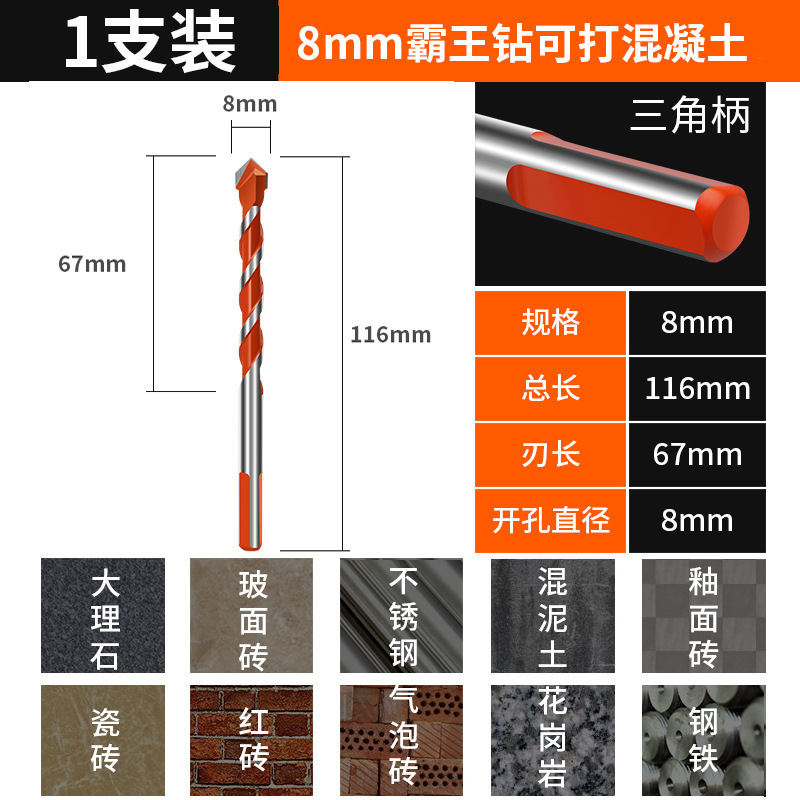 공장 재고 오버로드 드릴 세트 세라믹 타일 유리 콘크리트 구멍 드릴링 세라믹 합금 크로스 삼각형 드릴 비트스토어 가기