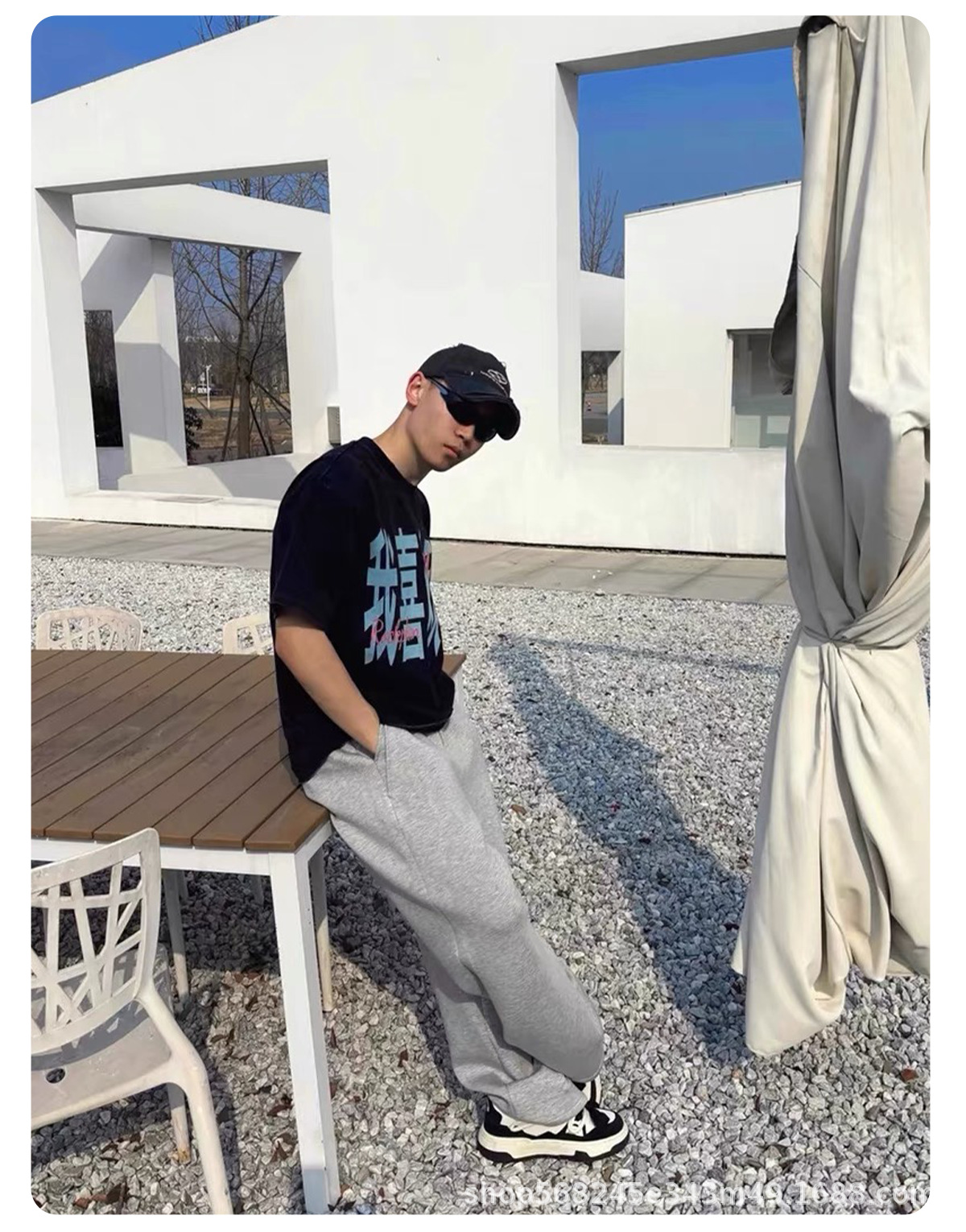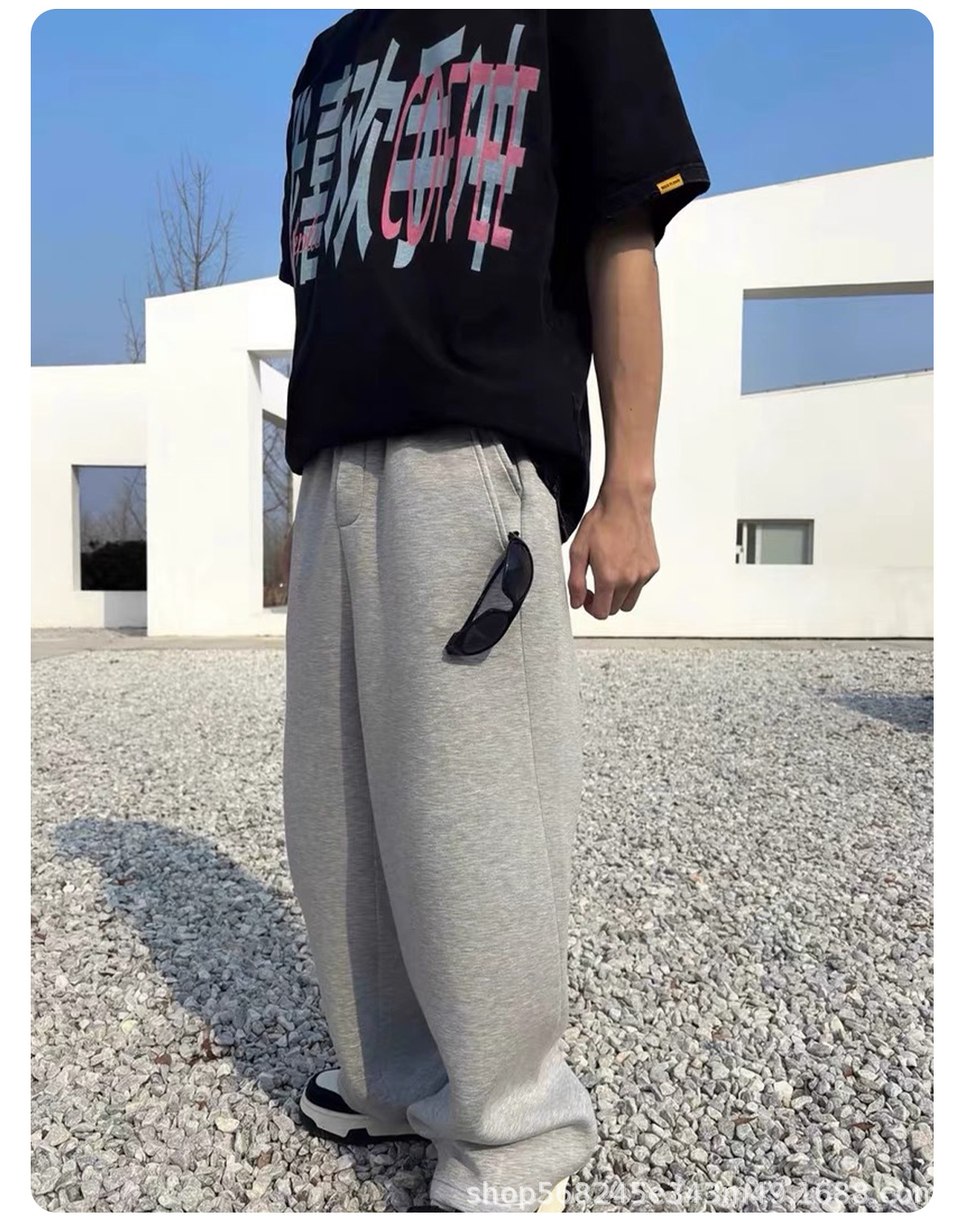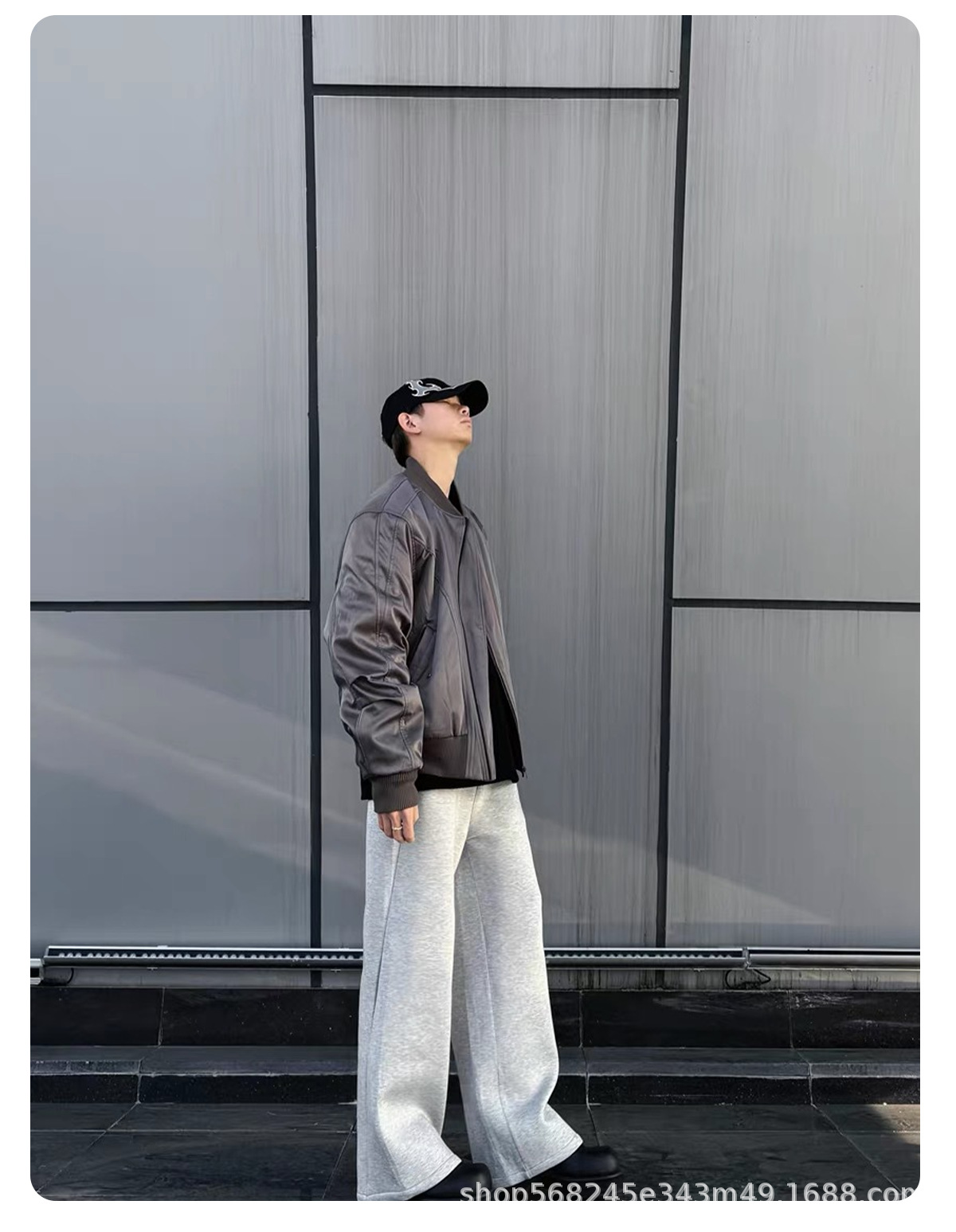 CSMY JCAESAR 공간 면 솔리드 컬러 프로필 마이크로 웨이 바지 남자 가을 느슨한 더블 포켓 캐주얼 와이드 레그 바지스토어 가기