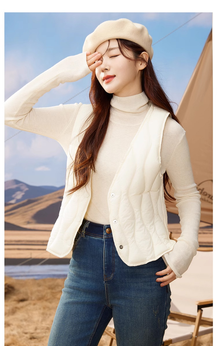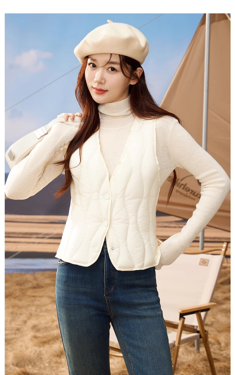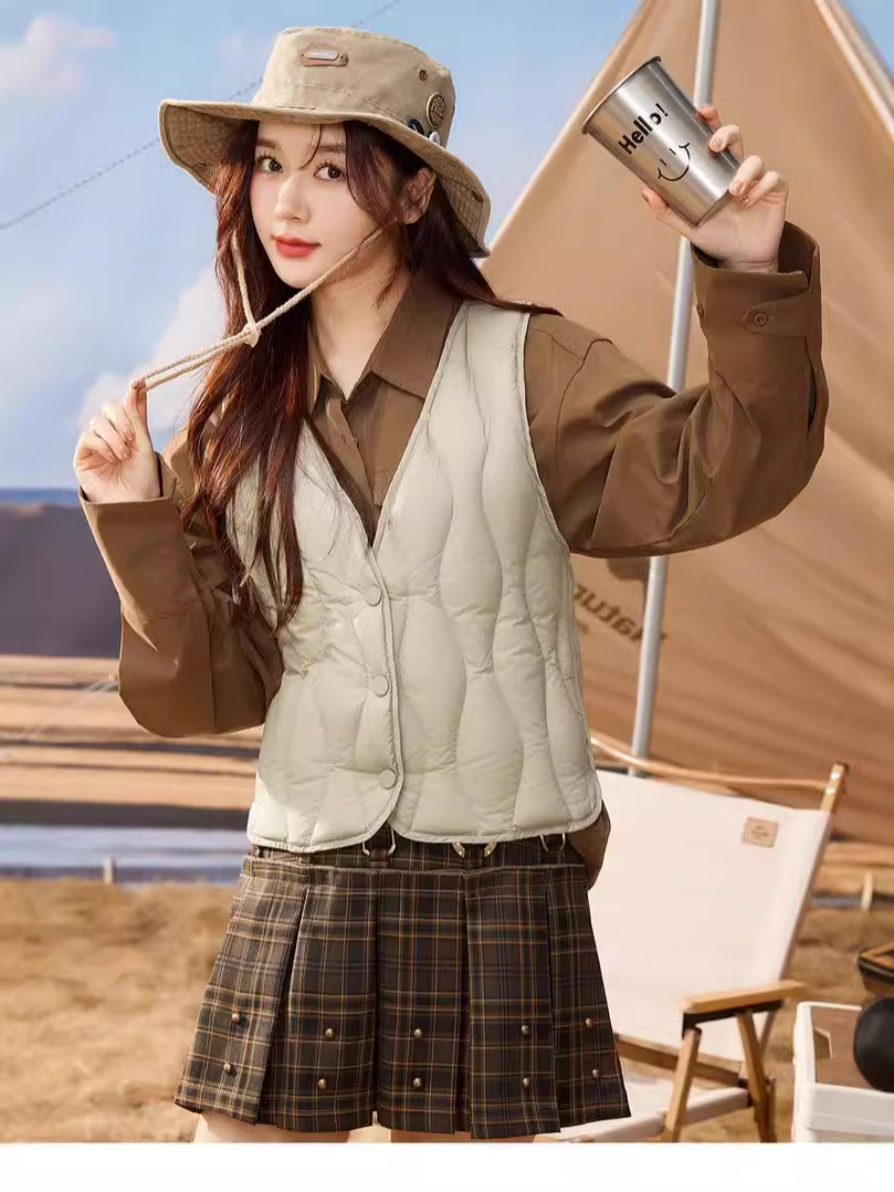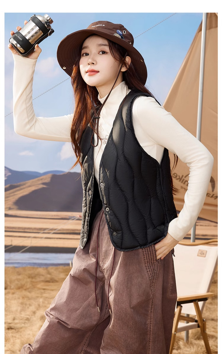 2024 새로운 가을 여성 V 넥 깃털 벨벳 조끼 조끼 내부 착용 다목적 따뜻한 레이어링 경량