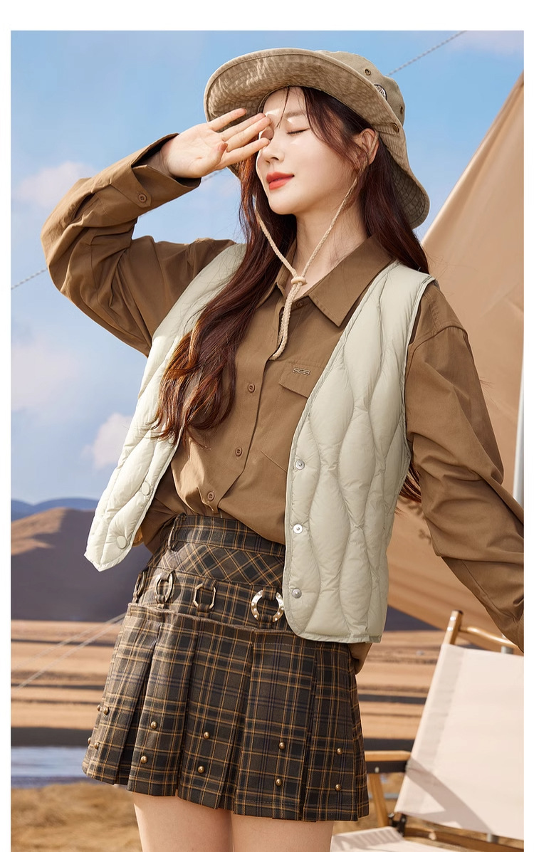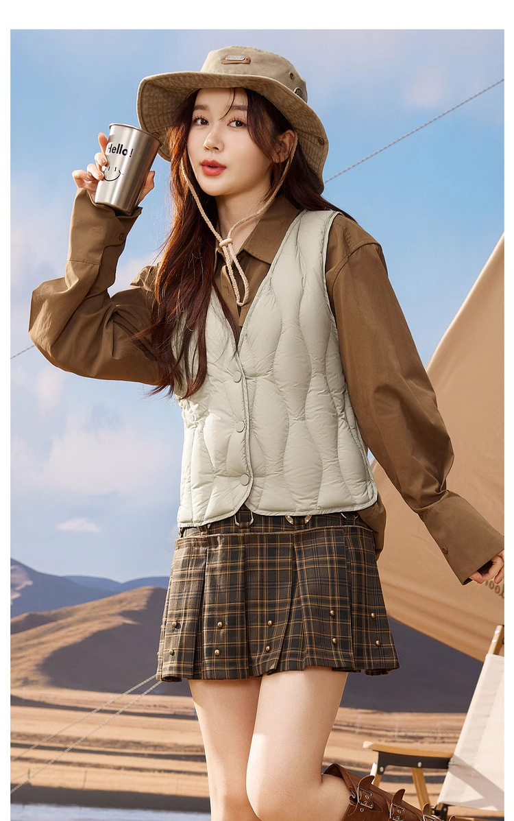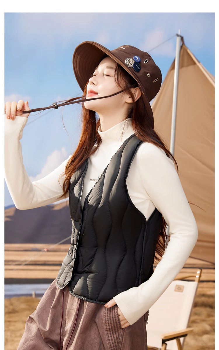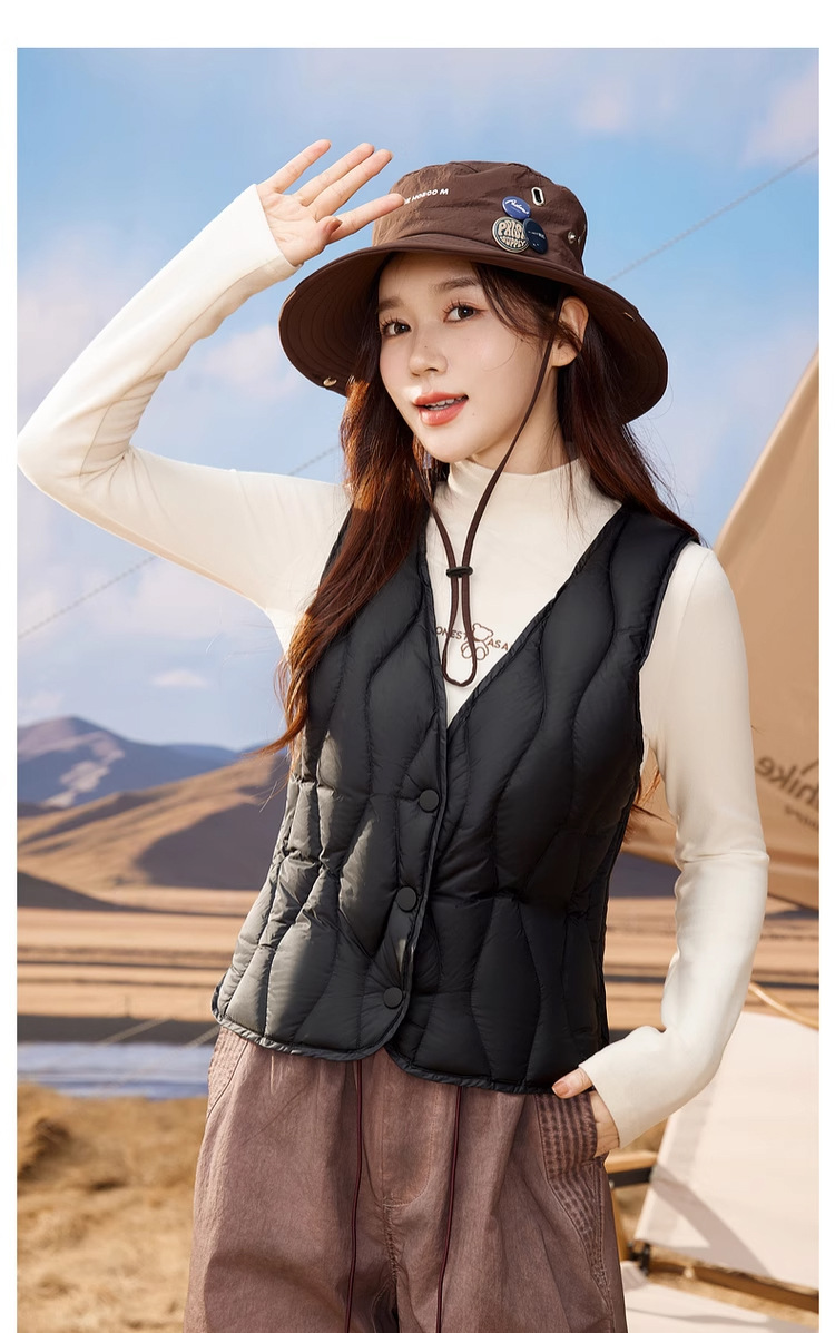2024 새로운 가을 여성 V 넥 깃털 벨벳 조끼 조끼 내부 착용 다목적 따뜻한 레이어링 경량