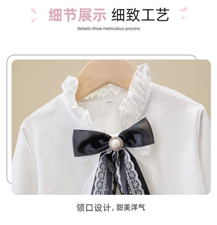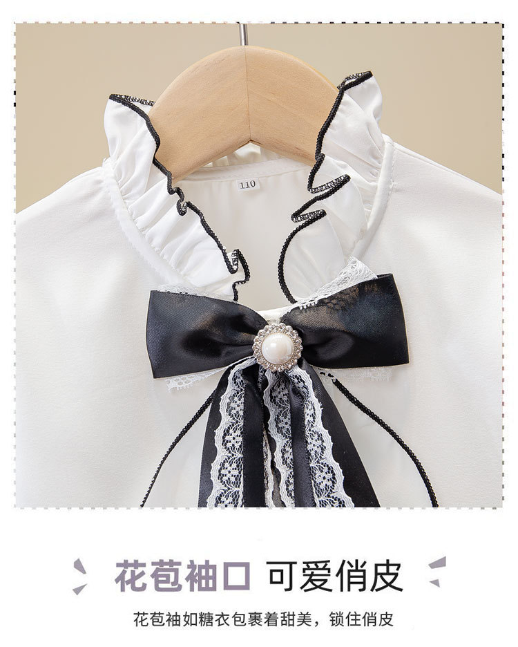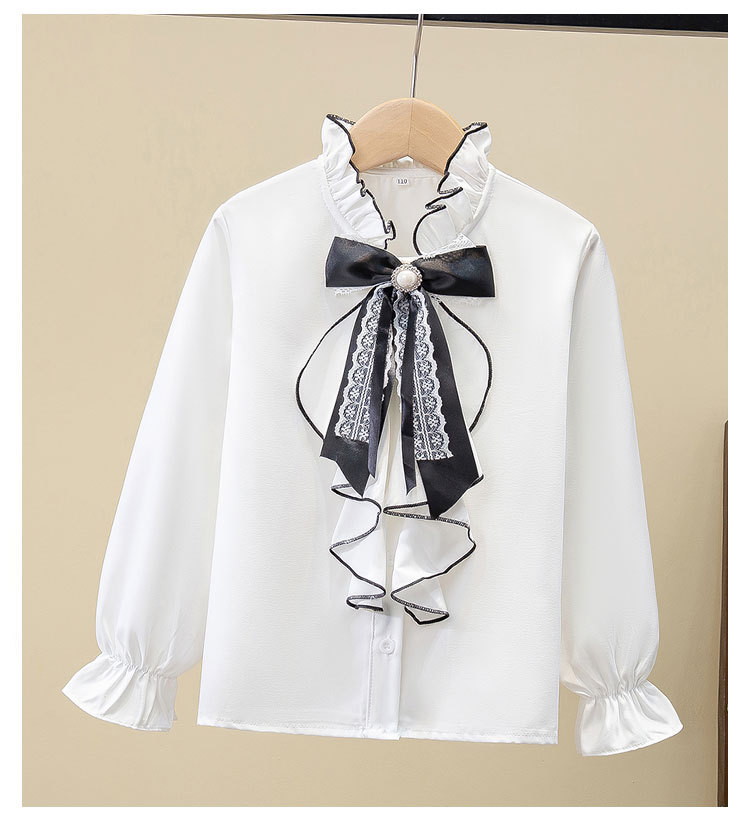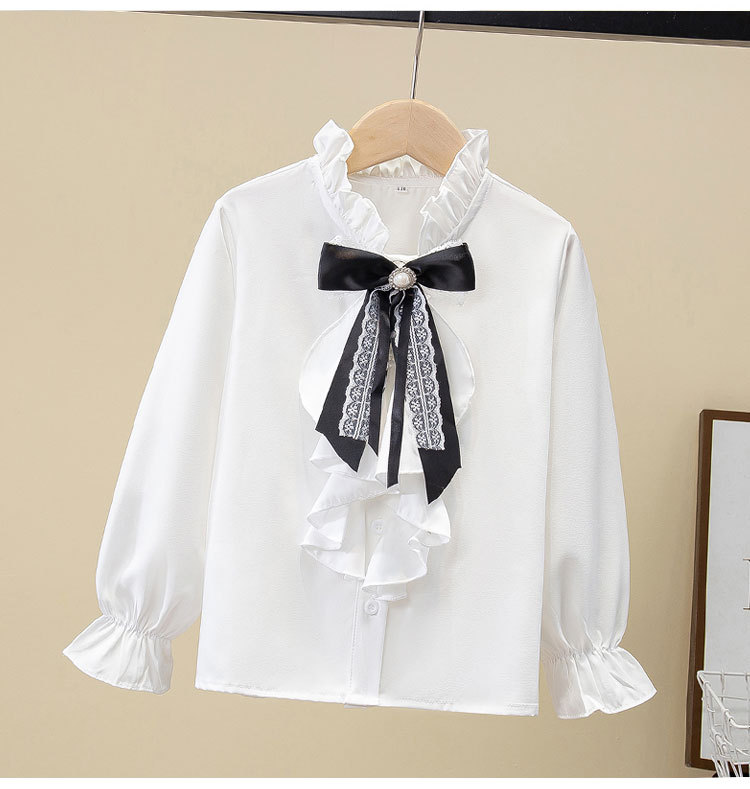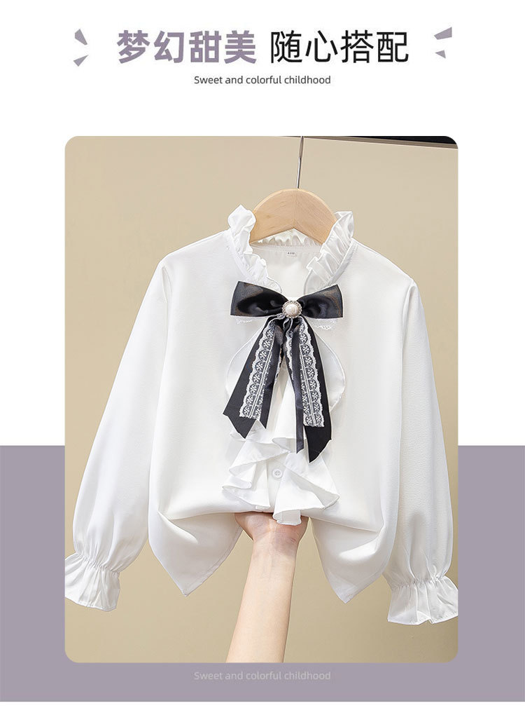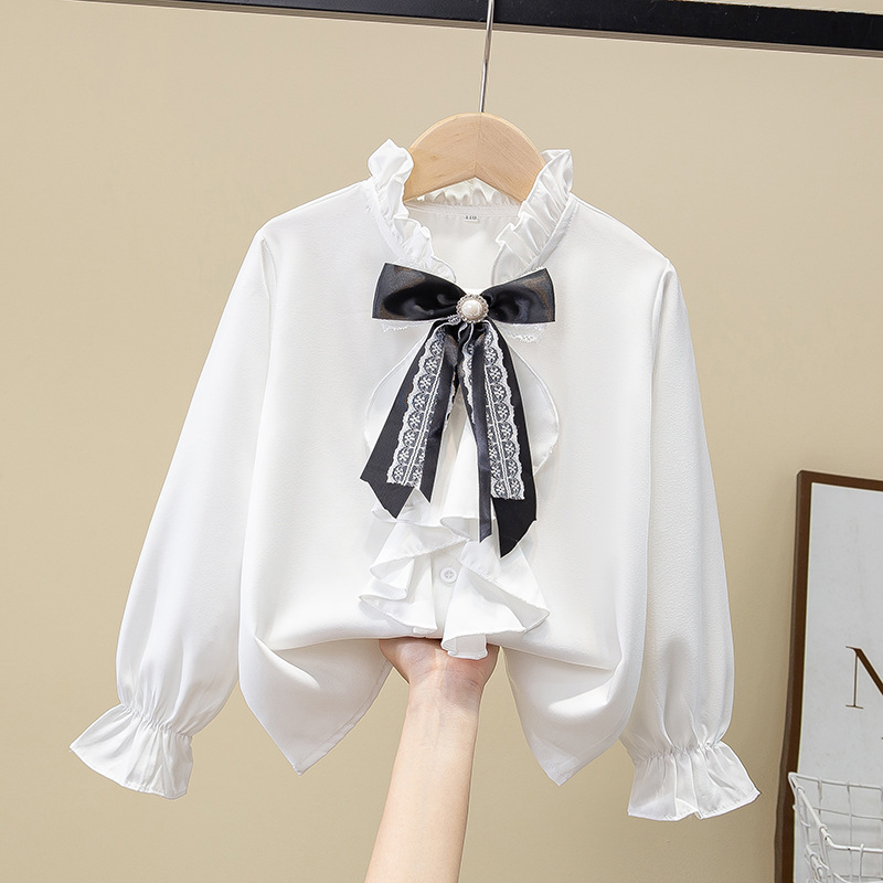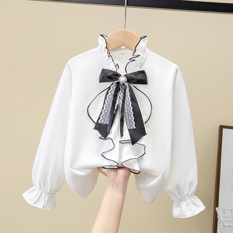 2024 년 가을 소녀 시폰 긴 소매 셔츠 중 큰 어린이를위한 대외 무역 소녀 수직 칼라 칼라 공주 귀여운 셔츠