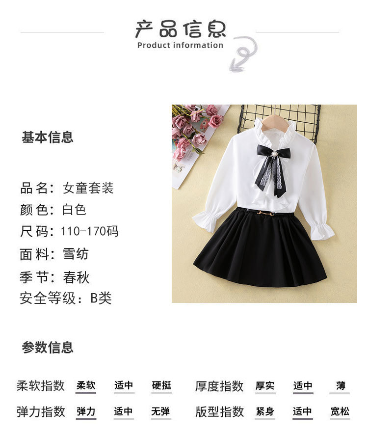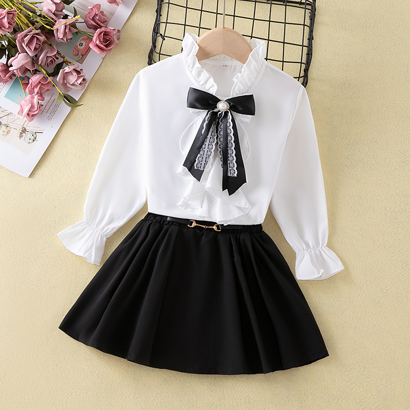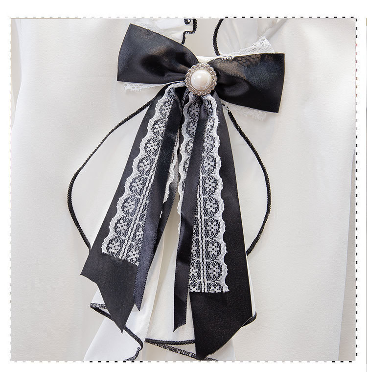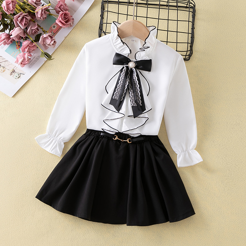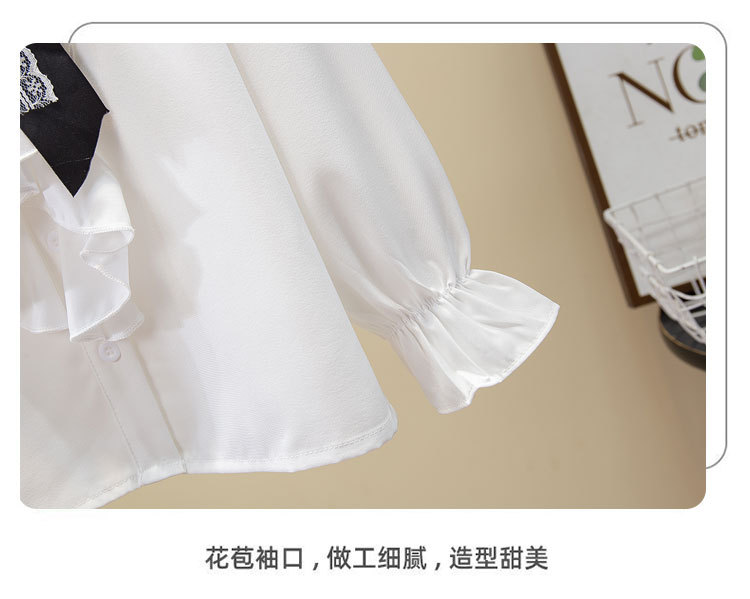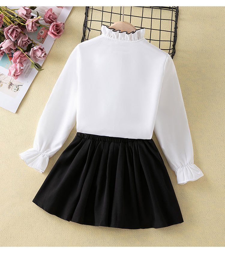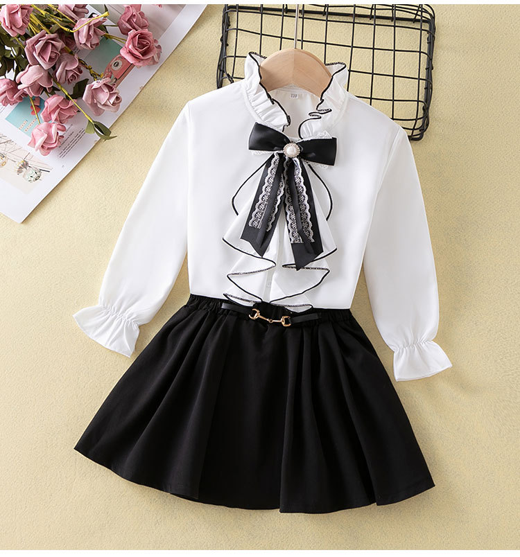 2024 년 가을 소녀 시폰 긴 소매 셔츠 중 큰 어린이를위한 대외 무역 소녀 수직 칼라 칼라 공주 귀여운 셔츠