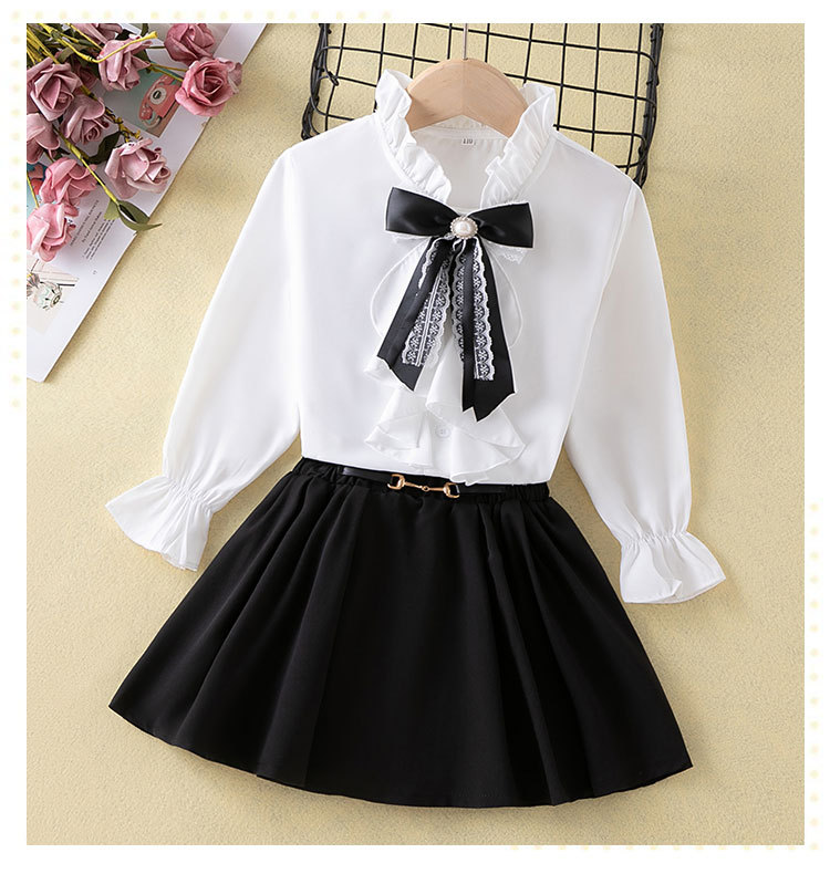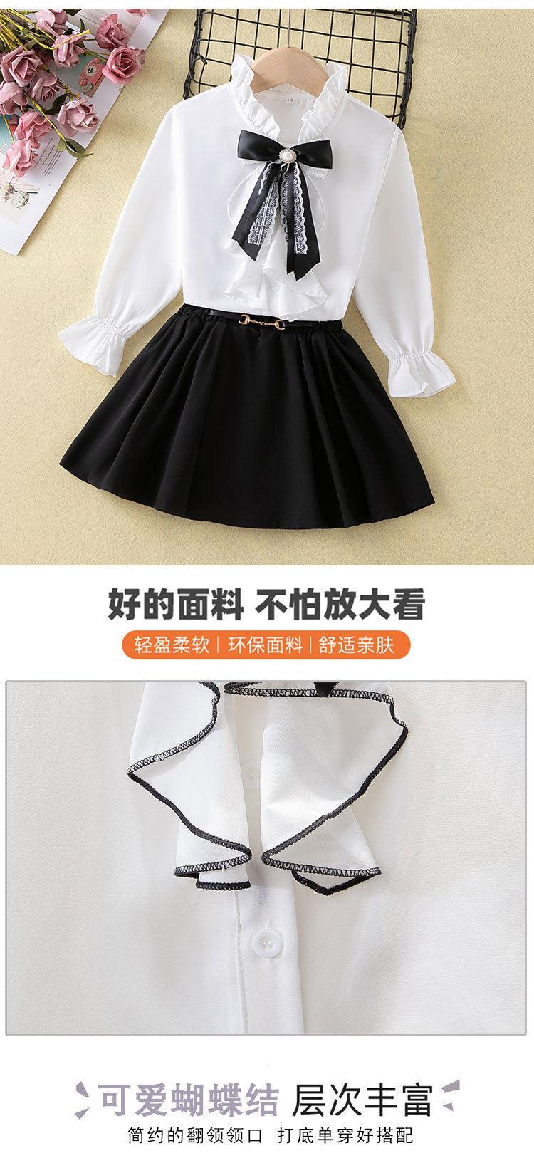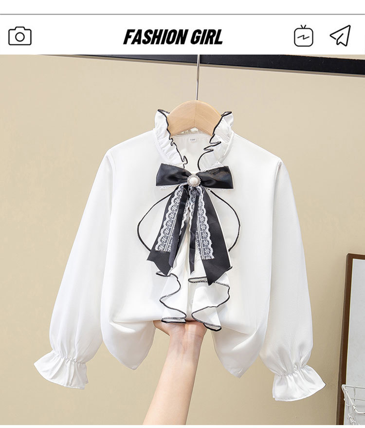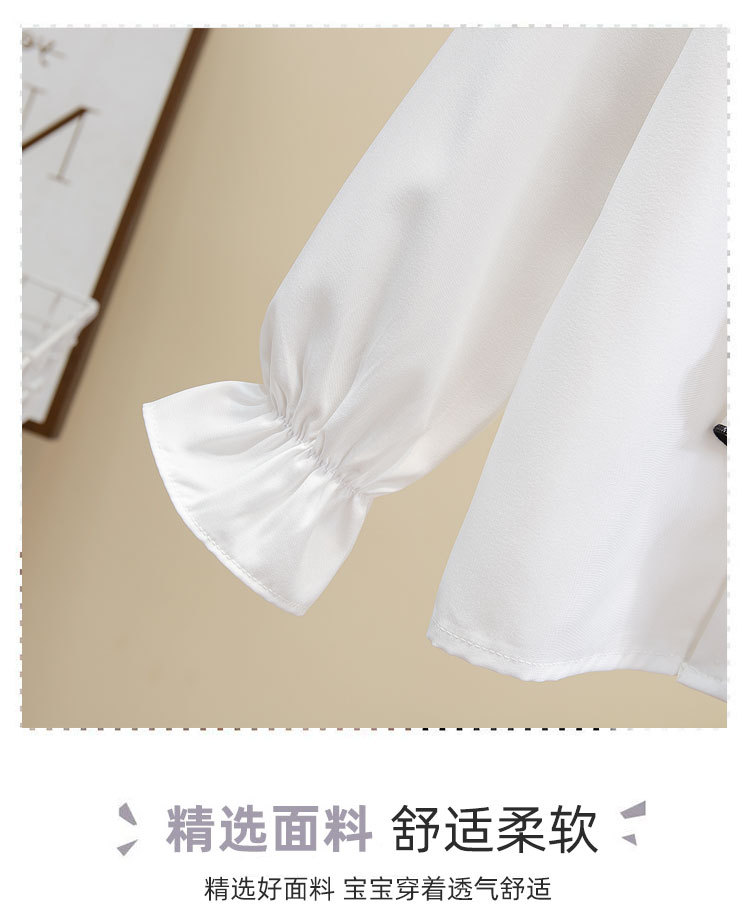 2024 년 가을 소녀 시폰 긴 소매 셔츠 중 큰 어린이를위한 대외 무역 소녀 수직 칼라 칼라 공주 귀여운 셔츠스토어 가기