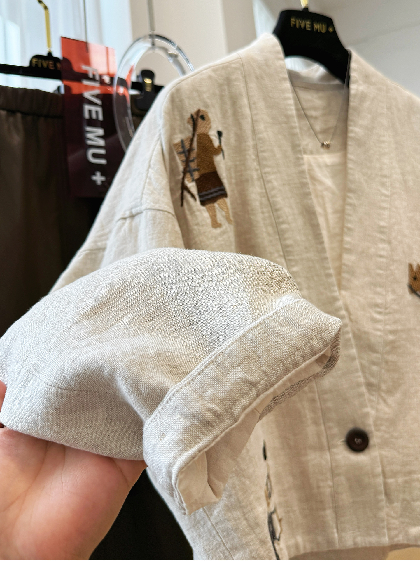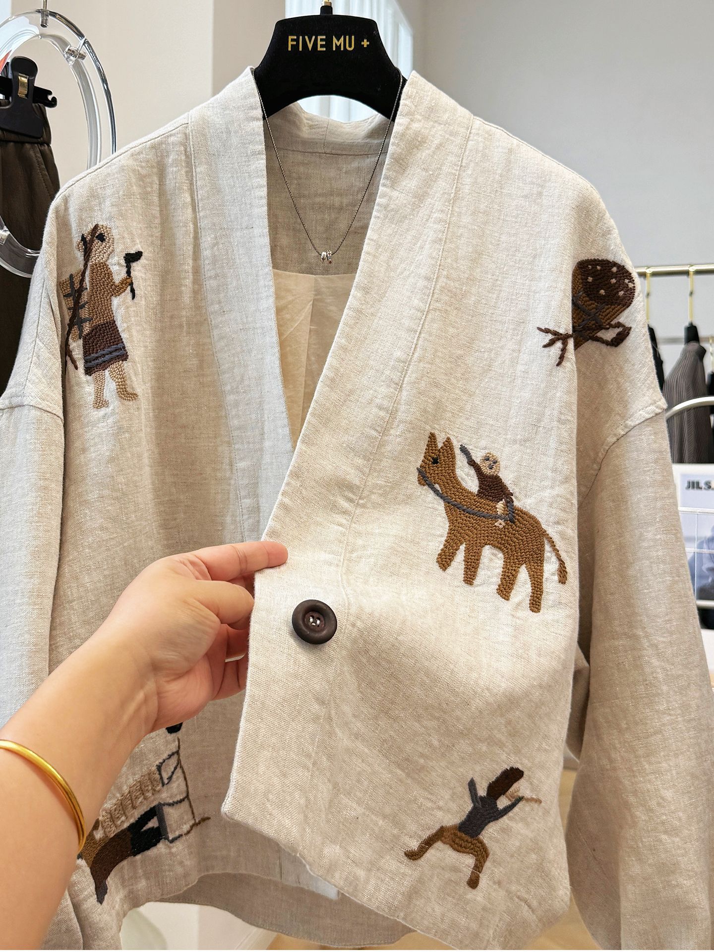 『신싱』 가디건 고급스러운 자수 독특하고 세련된 브이넥 고급 숏 자켓 여성용 가을 재킷