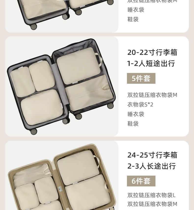 • 베이지 6종 세트 : 대/중/속옷가방 2개/파자마가방/신발가방