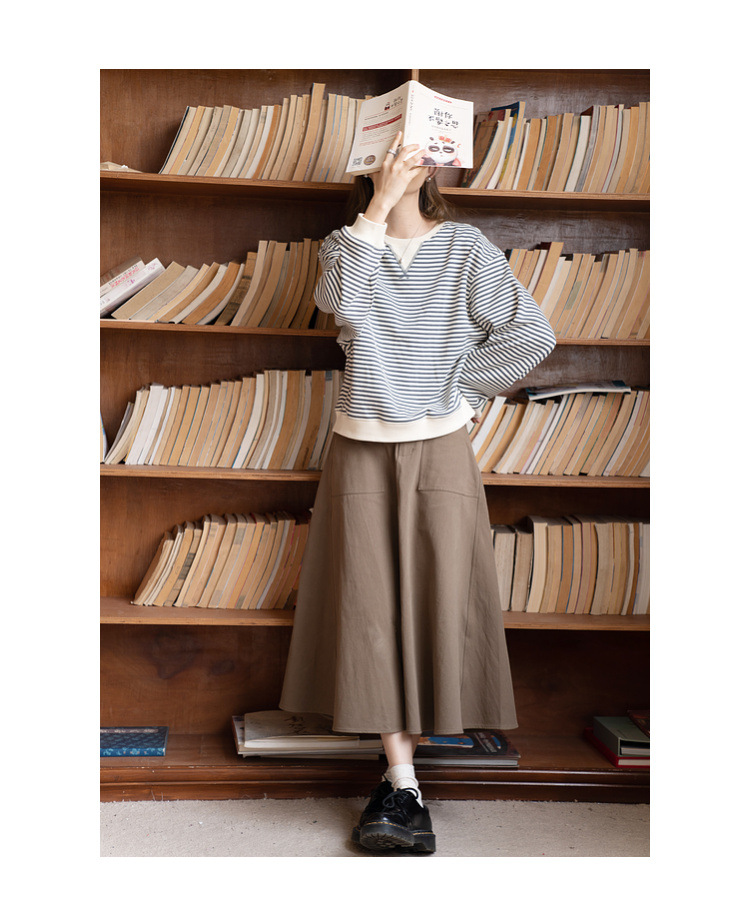 2024 가을 새로운 캐주얼 패션 그레이 스트라이프 니트 라운드 넥 컬러 매칭 디자인 감각 스웨터 여성의 오버 사이즈