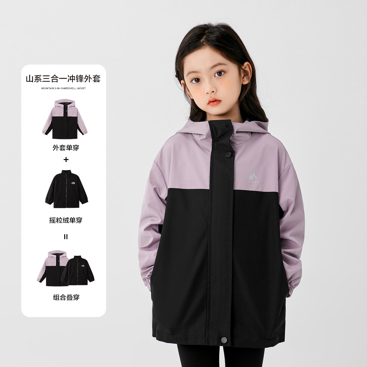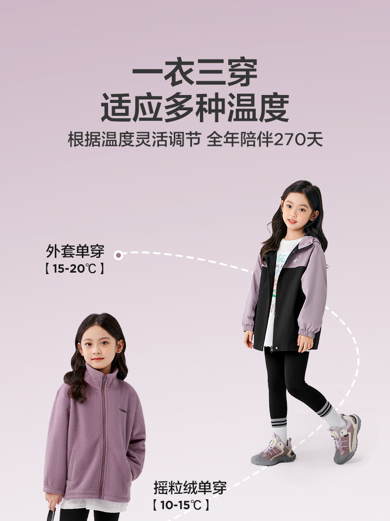 좌시 여아용 3-in-1 겨울 재킷, 2025년 가을/겨울 아동복, 여아용 플리스 안감 방수 아웃도어 의류스토어 가기