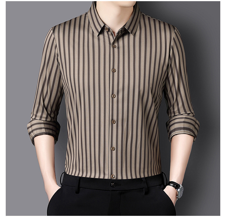 남성 봄과 가을 새로운 추적없는 긴팔 셔츠 줄무늬 젊고 중년 아빠 비즈니스 캐주얼 기지 원피스 셔츠스토어 가기