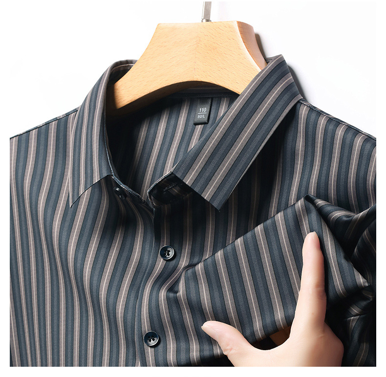 남성 봄과 가을 새로운 추적없는 긴팔 셔츠 줄무늬 젊고 중년 아빠 비즈니스 캐주얼 기지 원피스 셔츠
