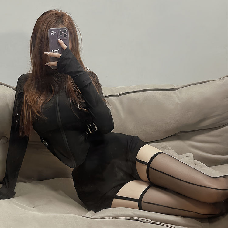 • 레이스 허리 - 블랙 레그 링 서스펜더 벨트