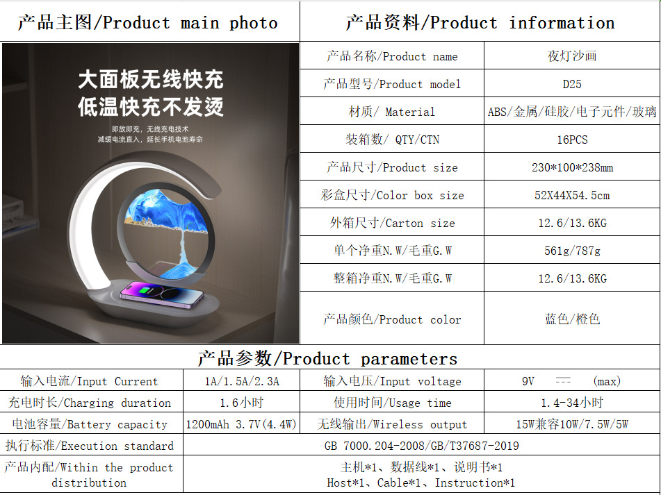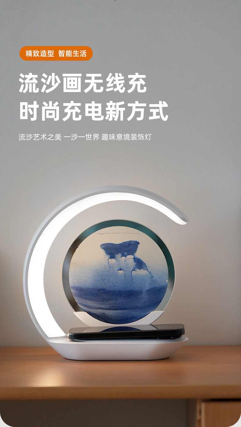 국경 간 새로운 퀵 샌드 페인팅 야간 조명 스마트 폰 무선 충전 USB 비즈니스 선물 LED 데스크 램프 침대 옆 높은 수준의 감각